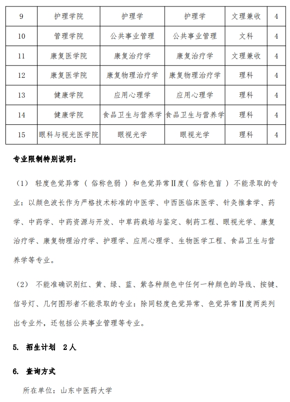 7、山东中医药大学2022年普通高等教育招生章程
