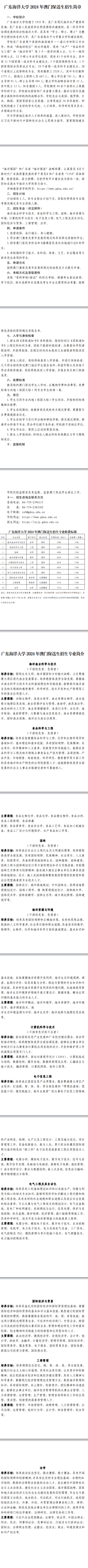 广东海洋大学2024年澳门保送生招生简章