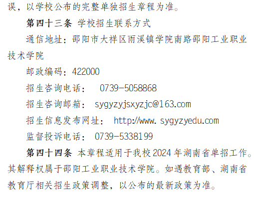 1、邵阳工业职业技术学院2024年普通高校招生章程