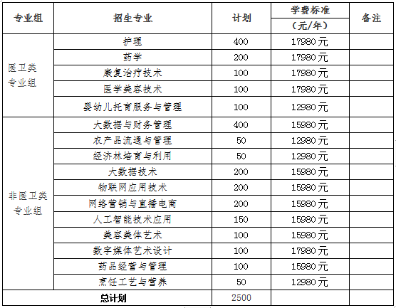 第十二条 我校2024年单招总计划数为2500人,其中包含单列计划的退役军人40人、特长生18人。本校2024年招生专业共16个。分专业单招计划及学费标准如下表,各专业最终学费标准以2024年湖南省物价主管部门审核为准。