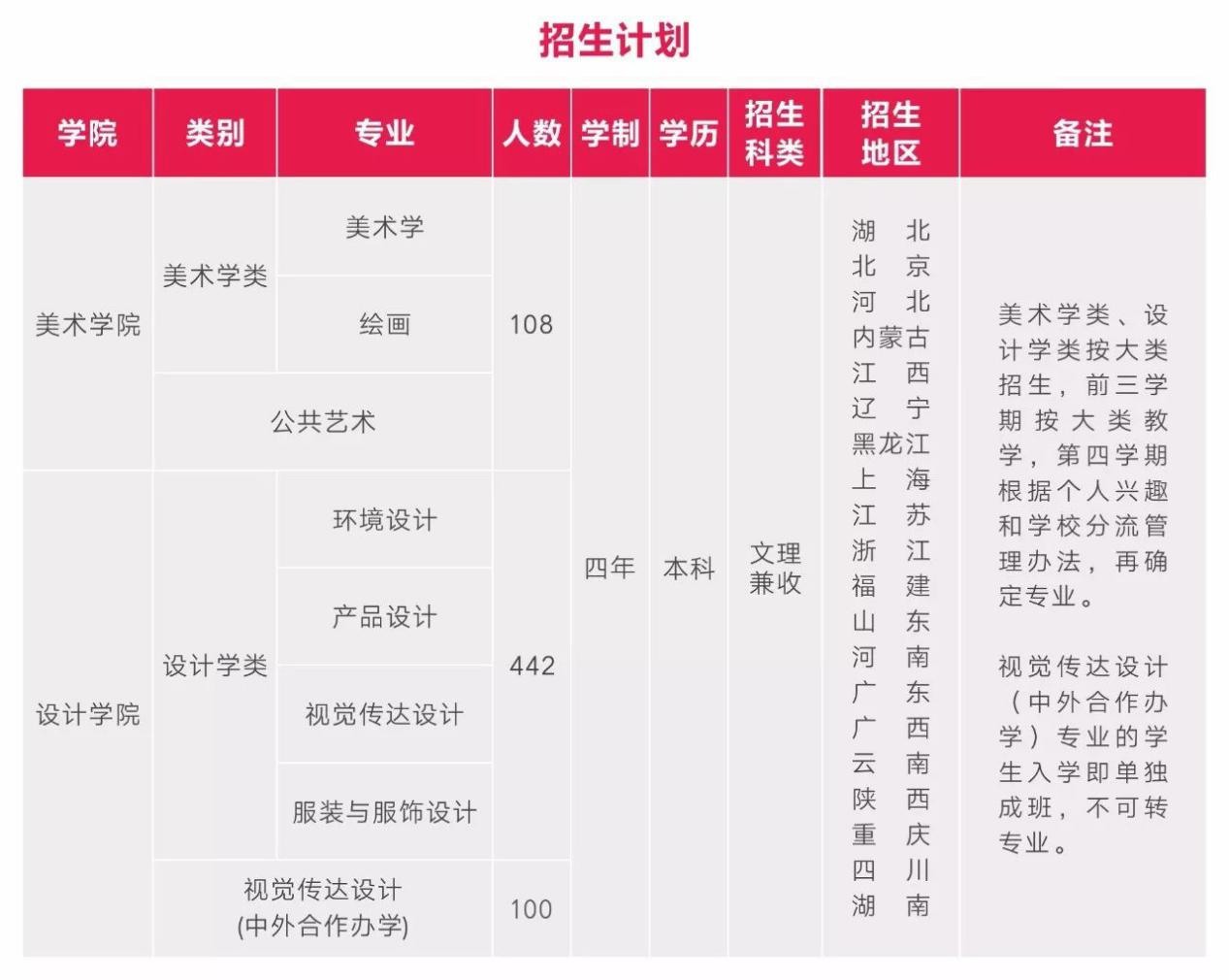 特别提示:湖北省考生按综合成绩排序录取【综合成绩= (专业统考成绩X60%+文化投档成绩x40%)x2】。如综合成绩相同,则按专业成绩排序录取。上海市考生获得美术类、设计类中任一合格证即可报考公共艺术,视觉传达设计(中外合作办学)专业,并按综合成绩排序录取。