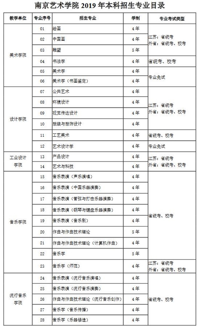 2、南京艺术学院 2026年艺术类本科校考专业与省级统...