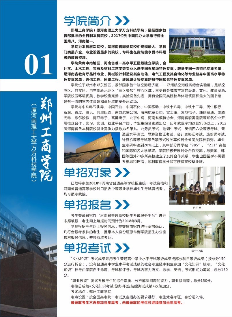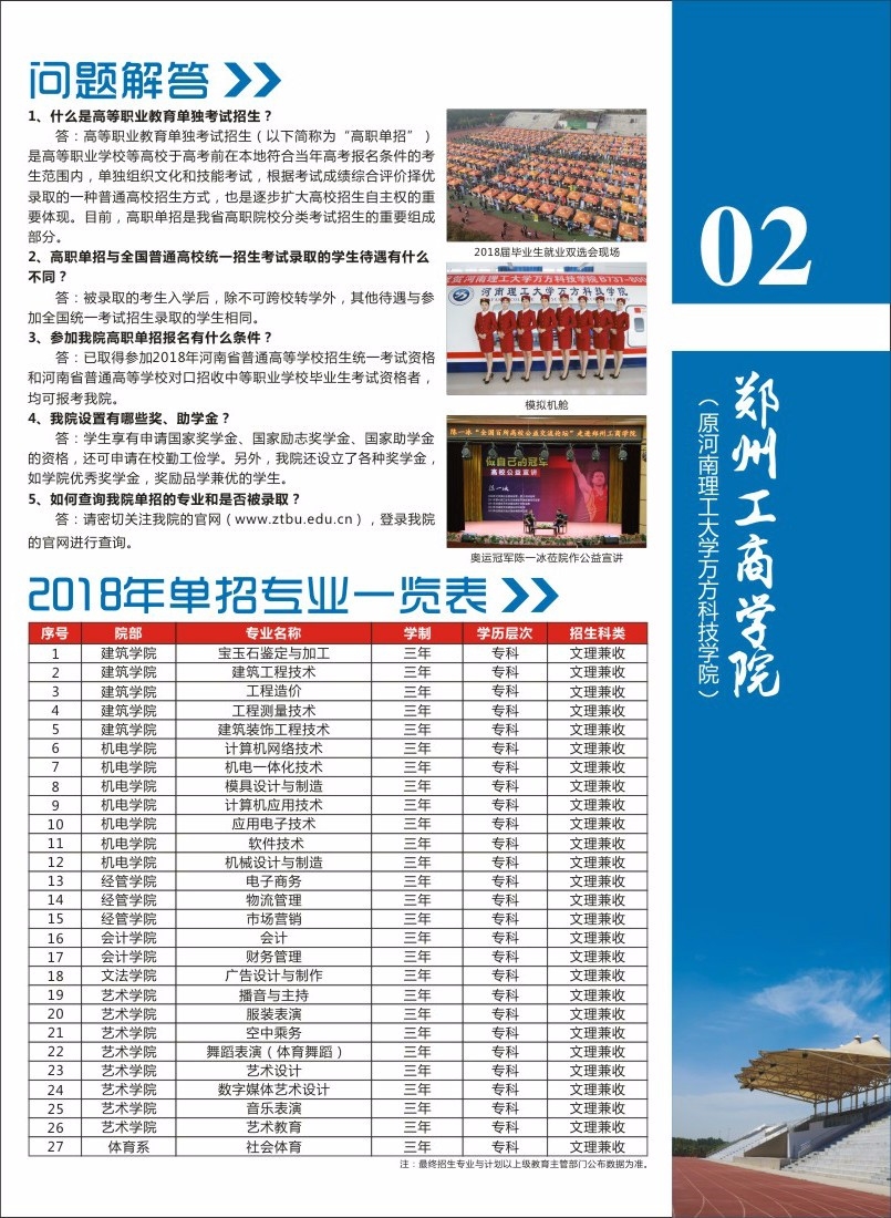 郑州工商学院2018年单招简章