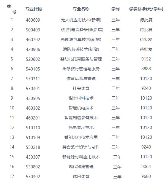 第五章 招生专业及收费标准