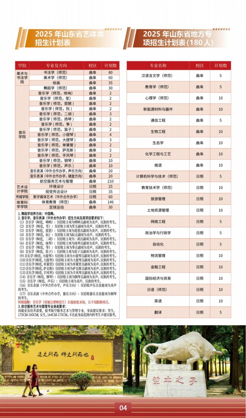 3、曲阜师范大学2025年普通本科艺术类专业招生简章