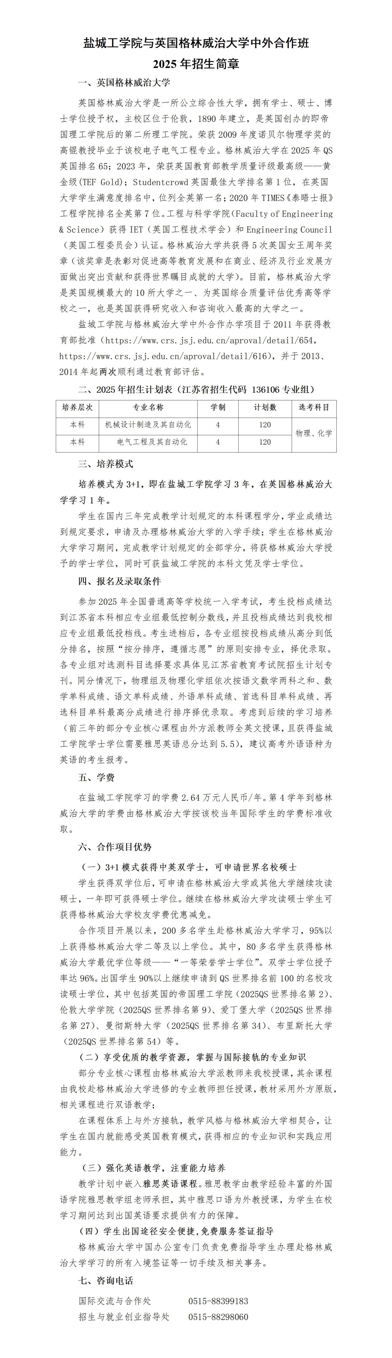 【2025年】盐城工学院与英国格林威治大学中外合作班2025年招生简章