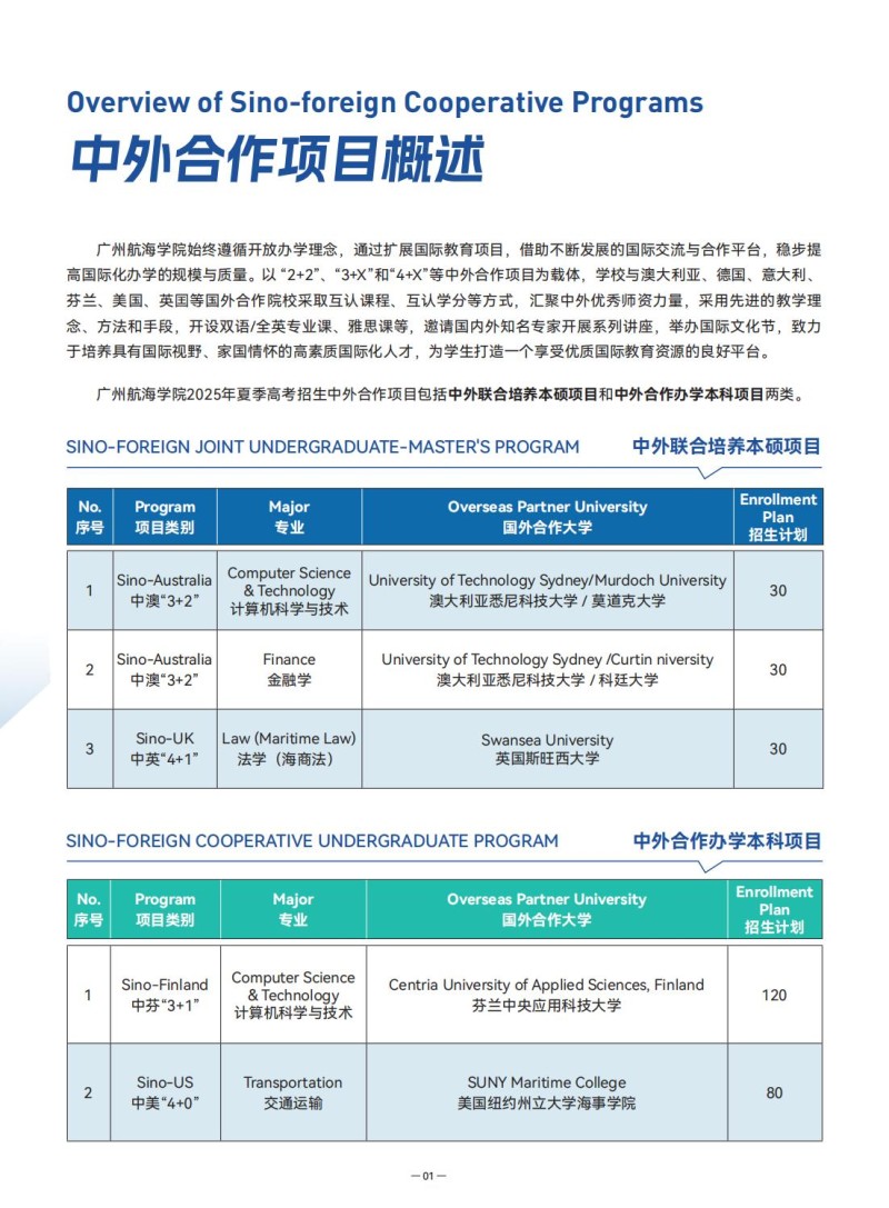 广州航海学院2025中外合作项目招生简章
