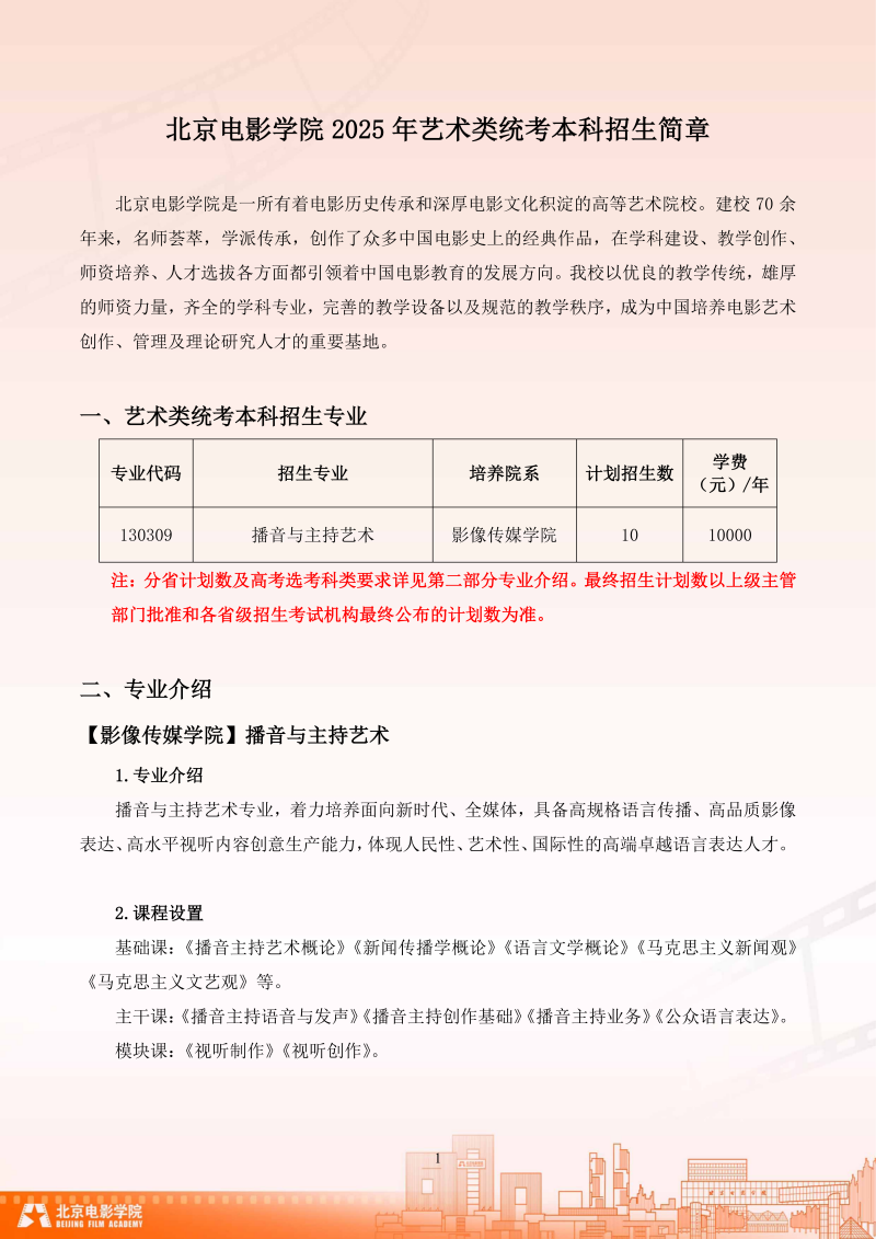 北京电影学院 2025 年艺术类统考本科招生简章
