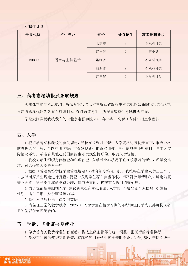 2、北京电影学院2026年艺术类校考本科招生简章