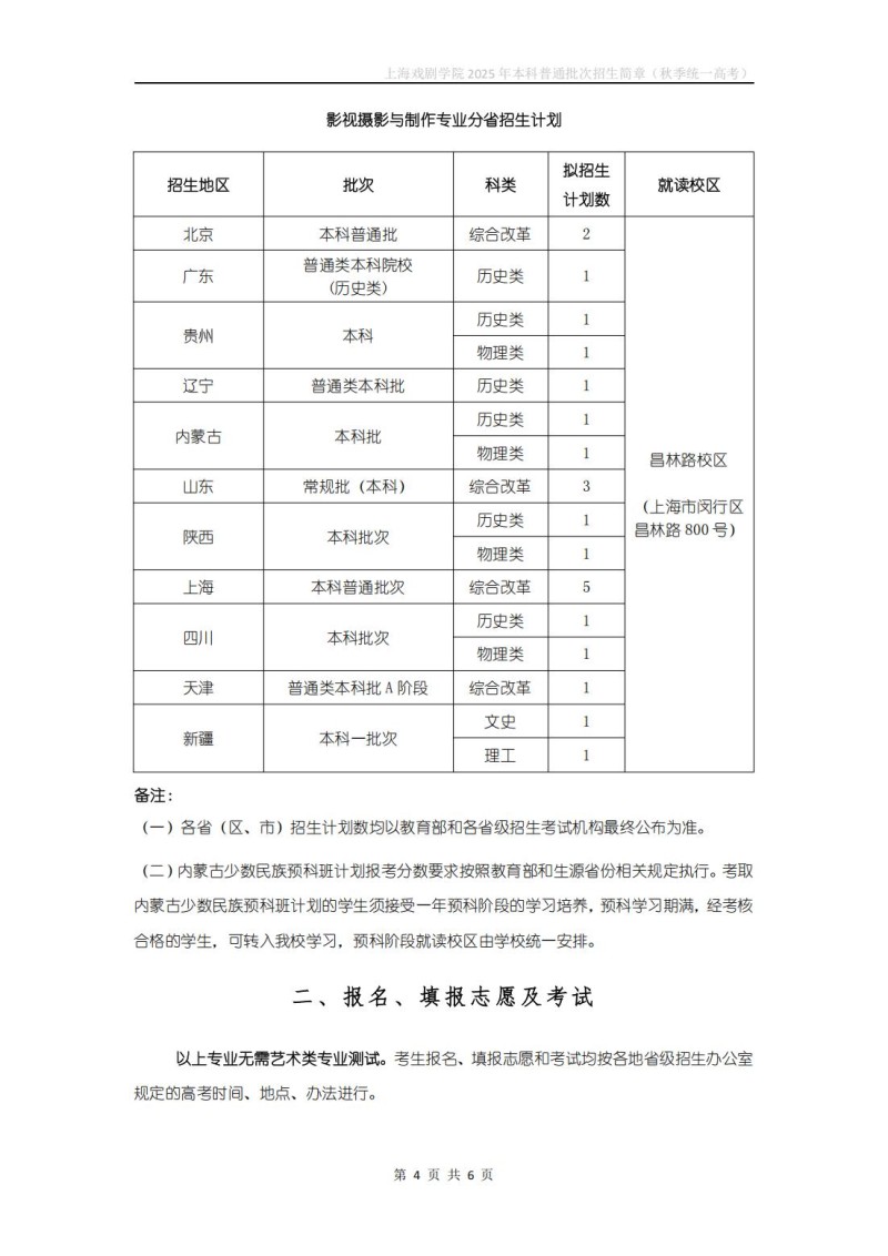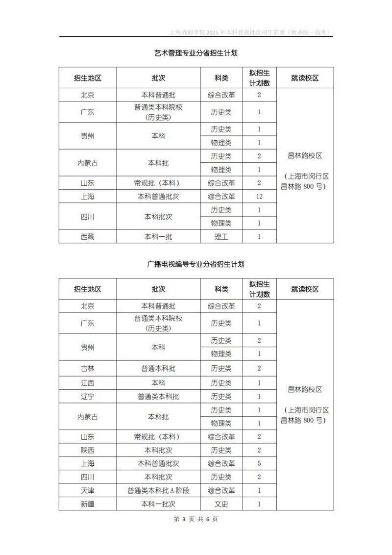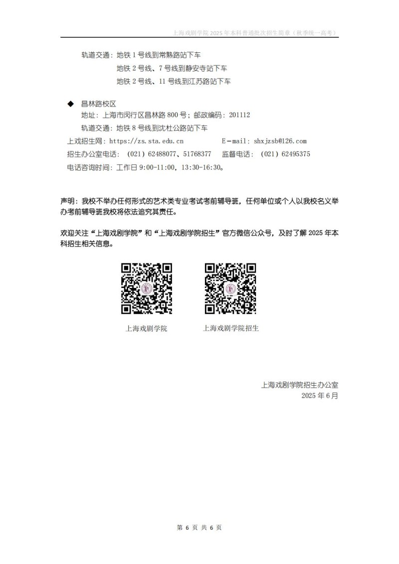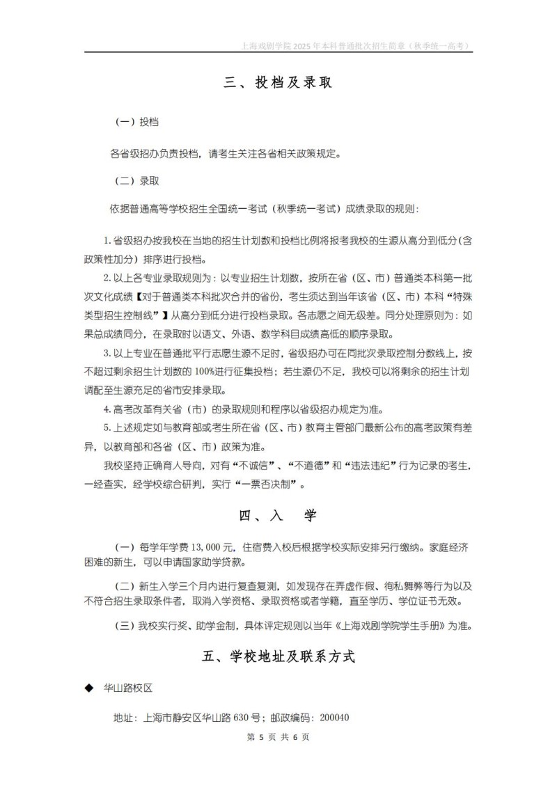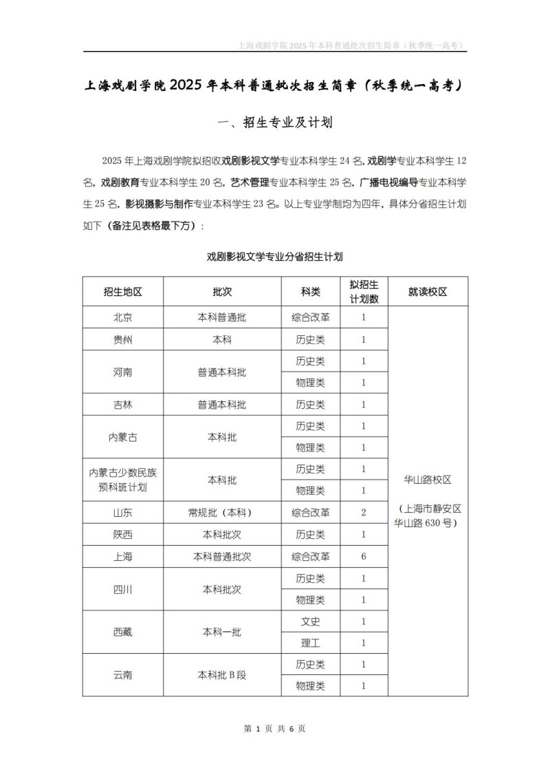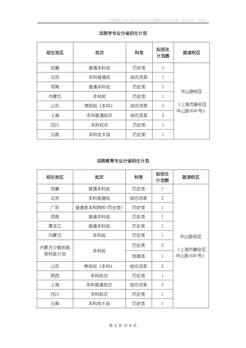上海戏剧学院2025年本科普通批次招生简章(秋季统一高考)