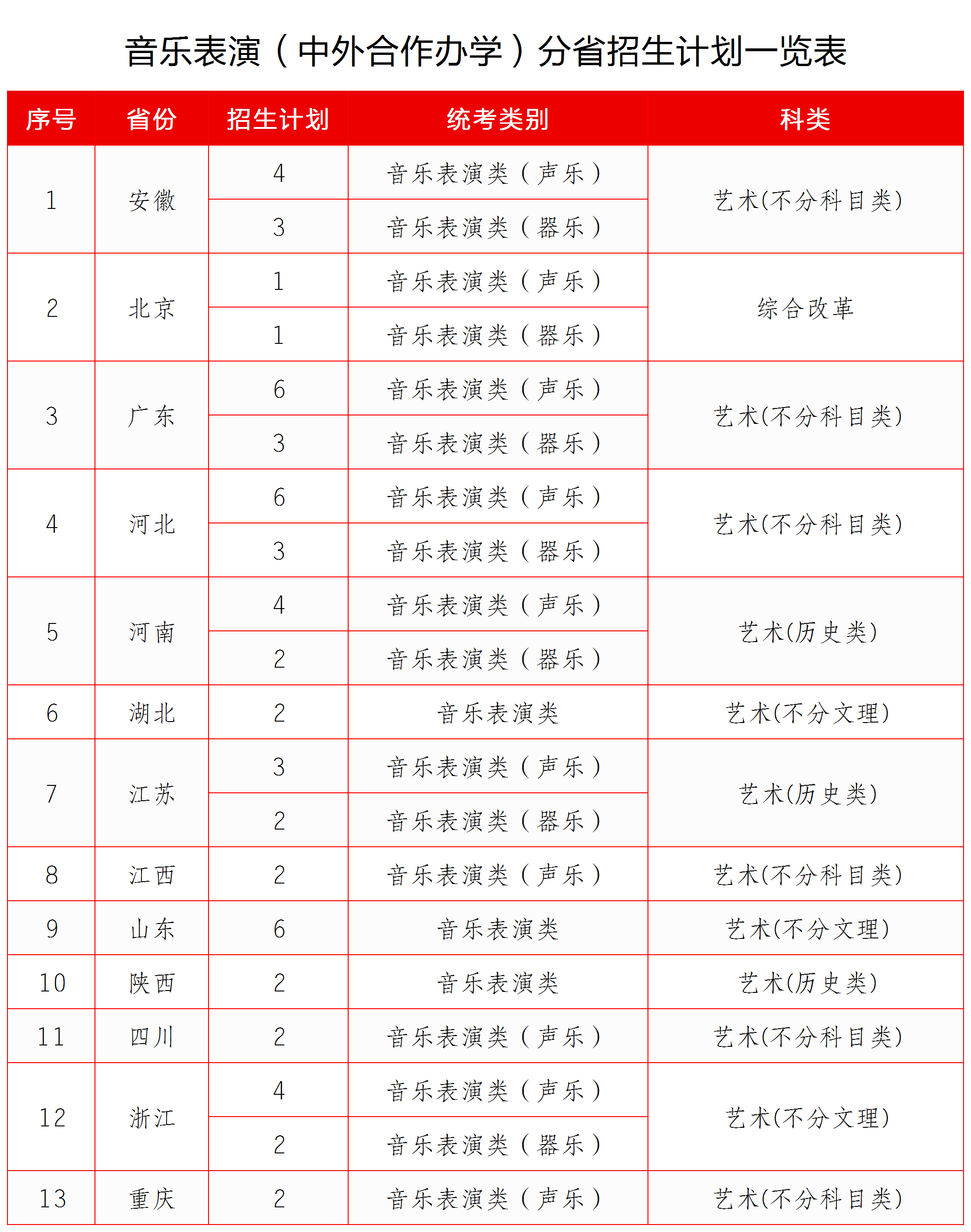 招生专业为音乐表演(中外合作办学),专业代码130201H。招生计划60人。