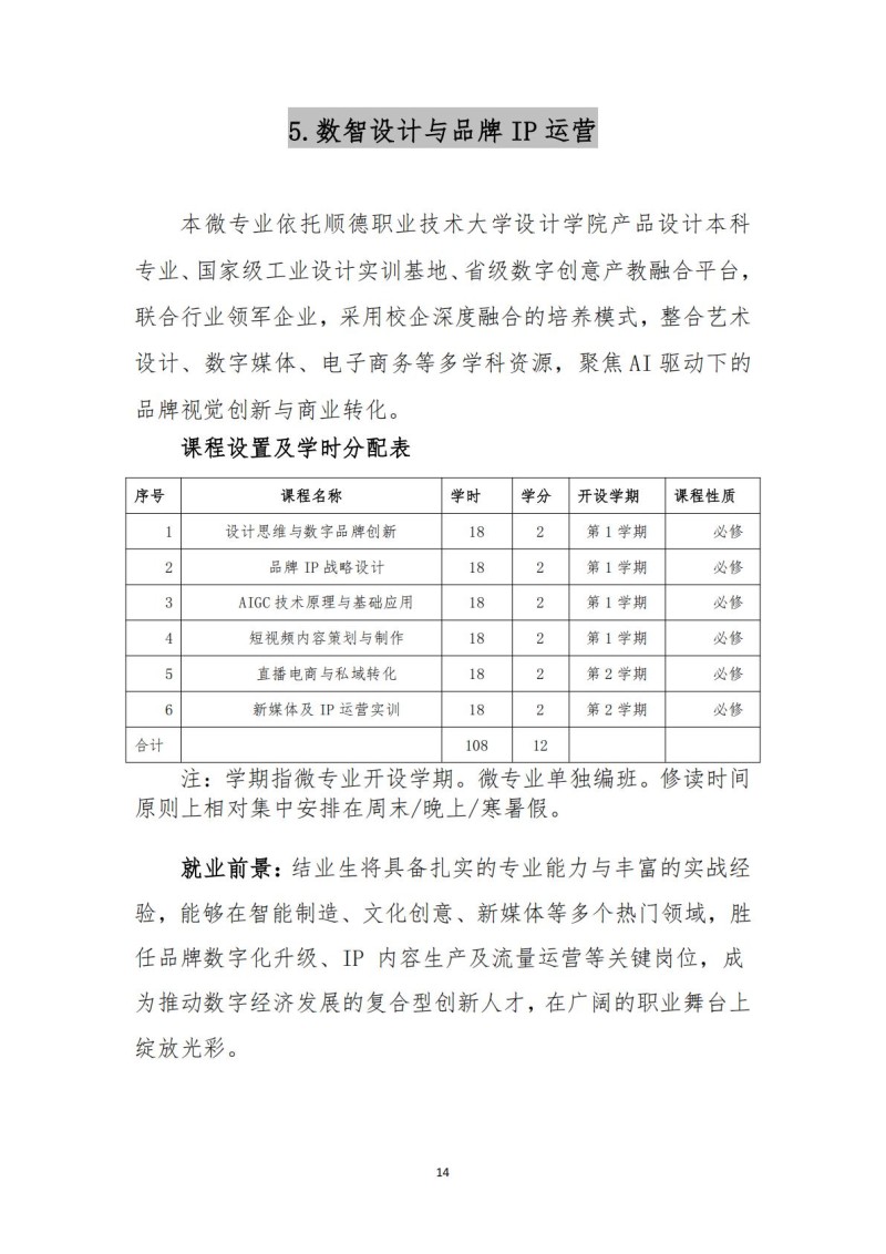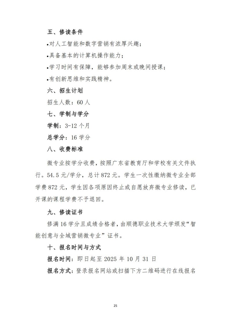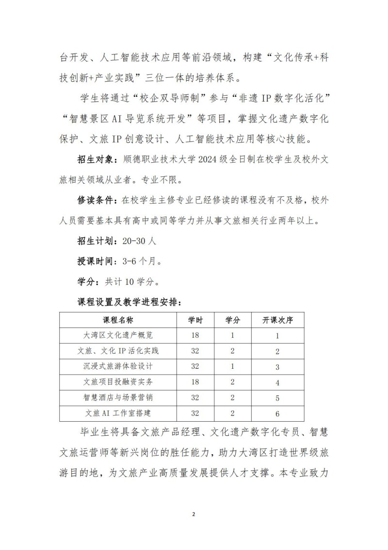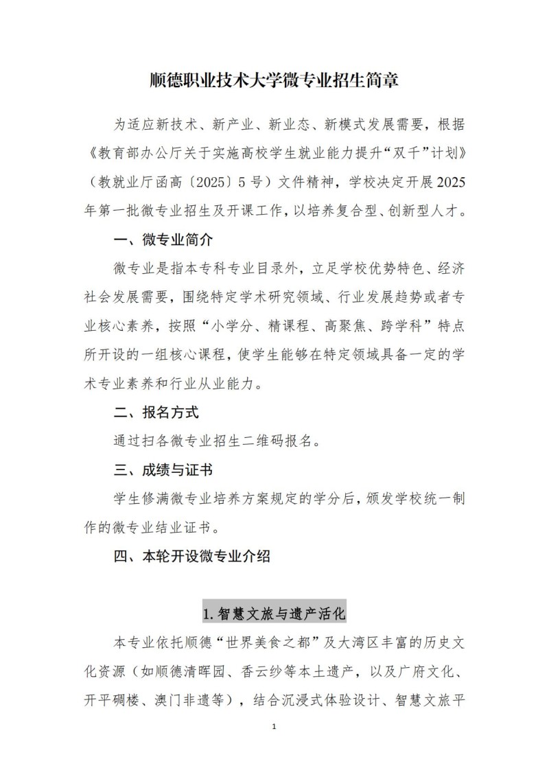 顺德职业技术大学微专业招生简章
