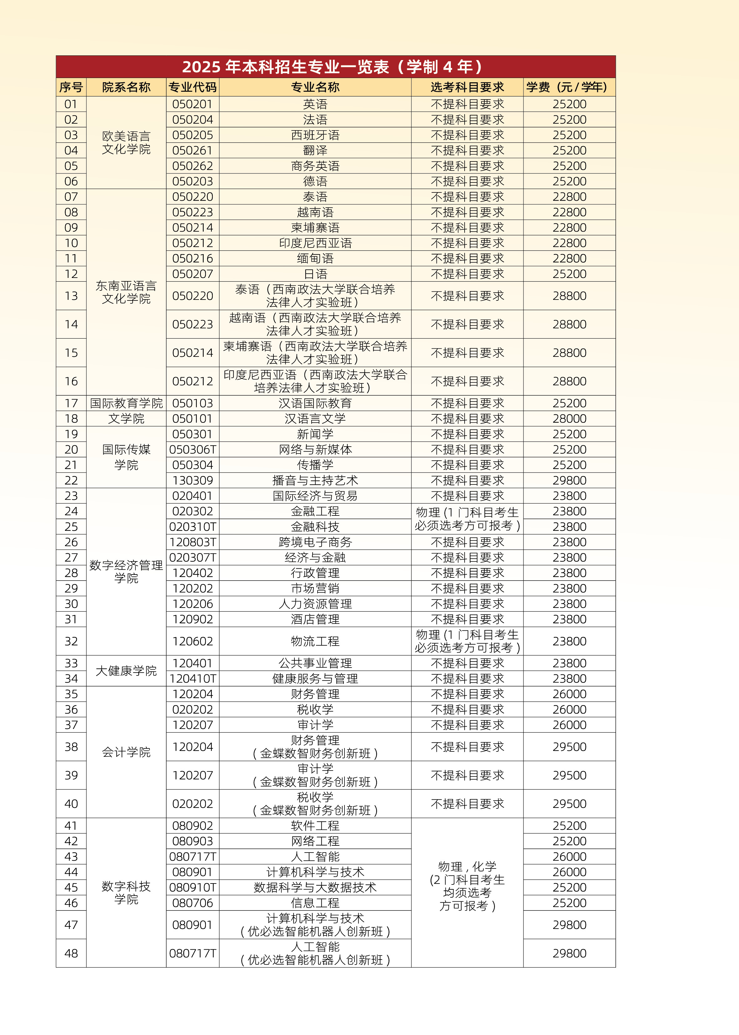 广西外国语学院2025年招生简章