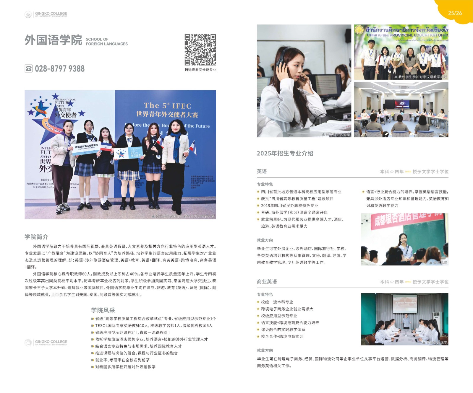 成都银杏酒店管理学院2025年招生简章(含全国分省分专业招生计划)