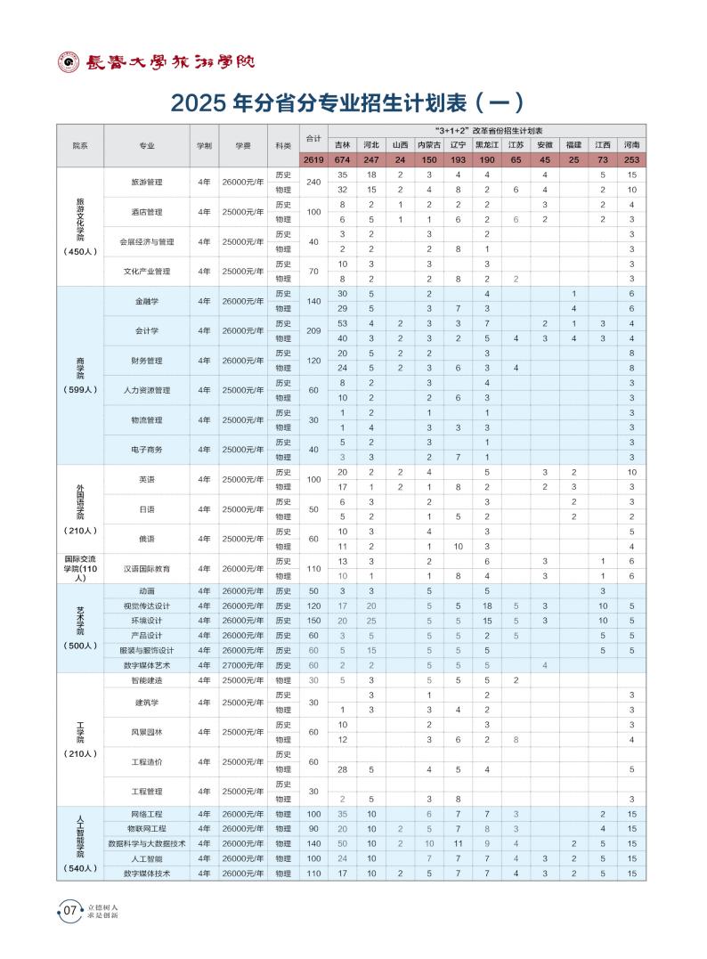 1、长春大学旅游学院2025年本科招生专业及选考科目要...