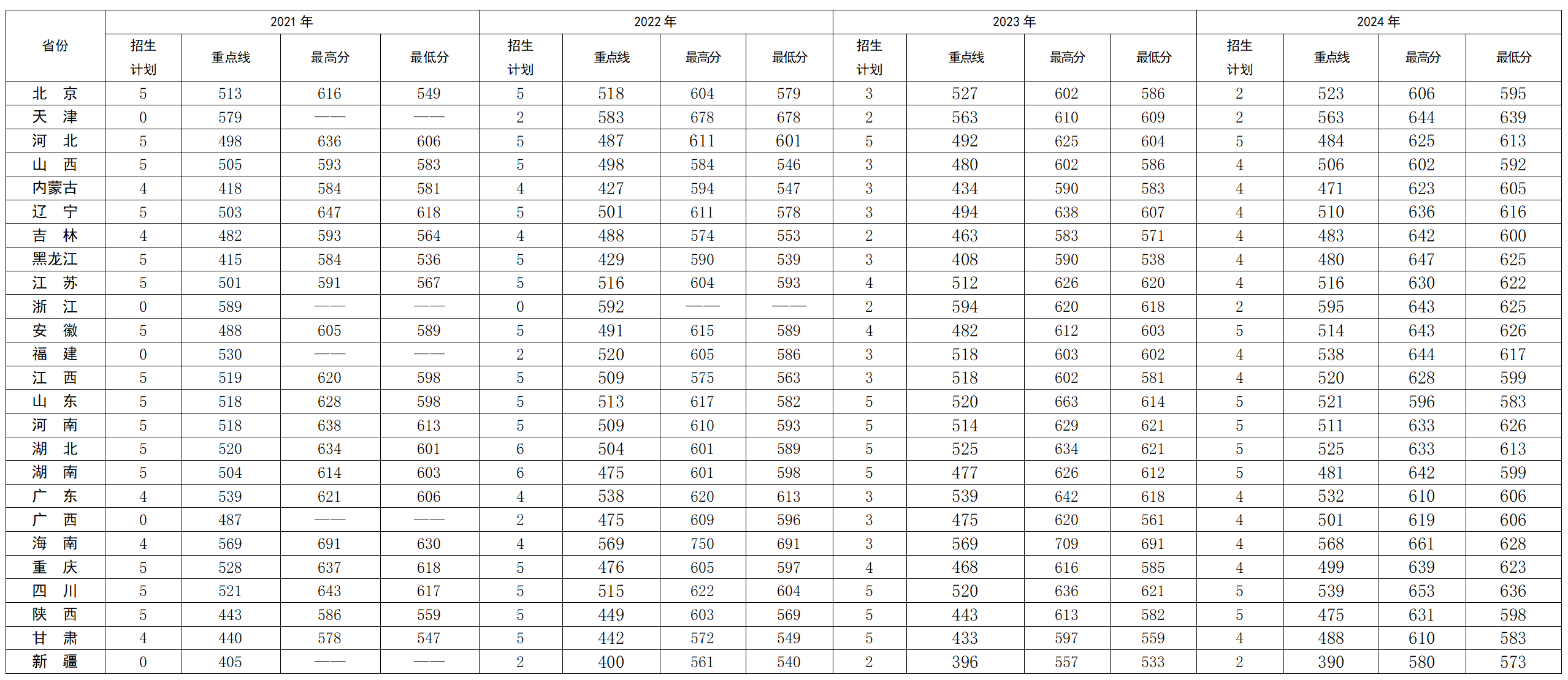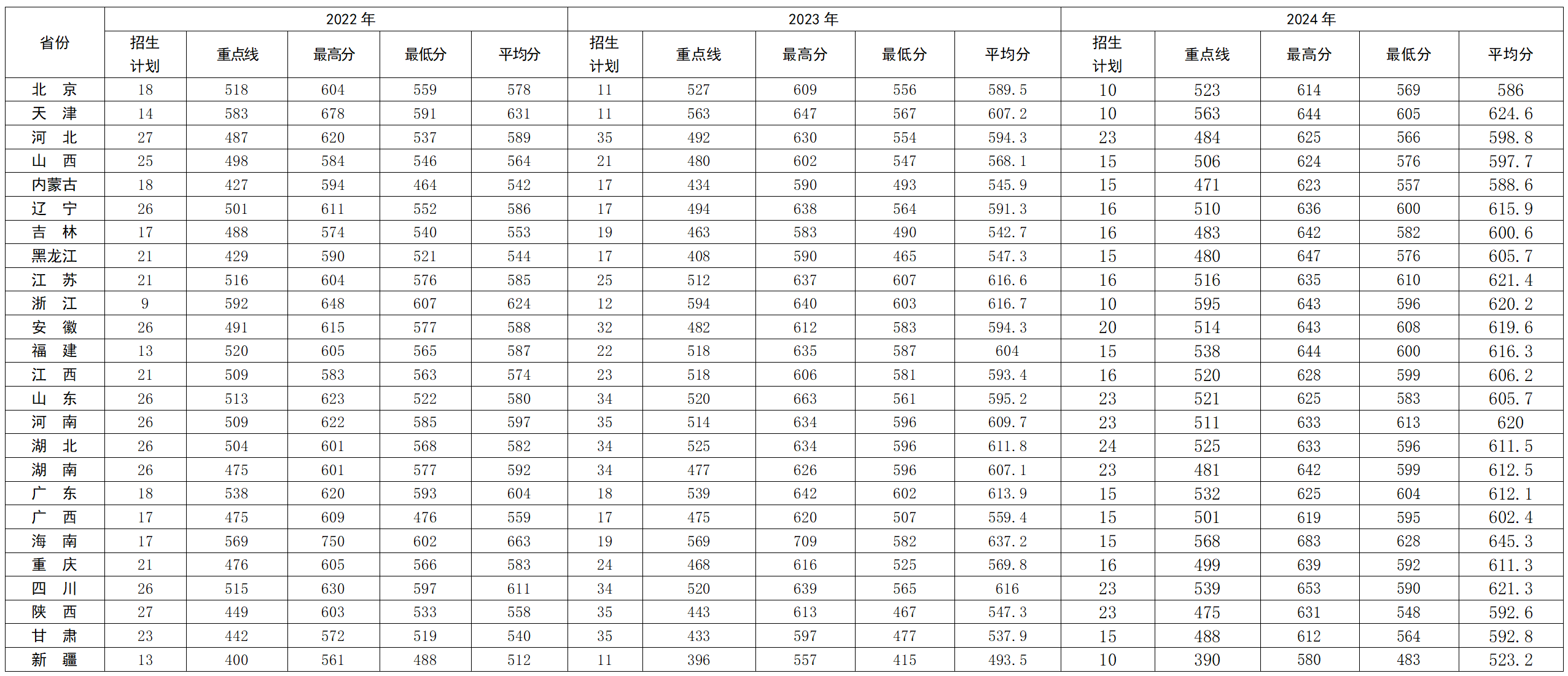 各省招生计划(详见计划表)