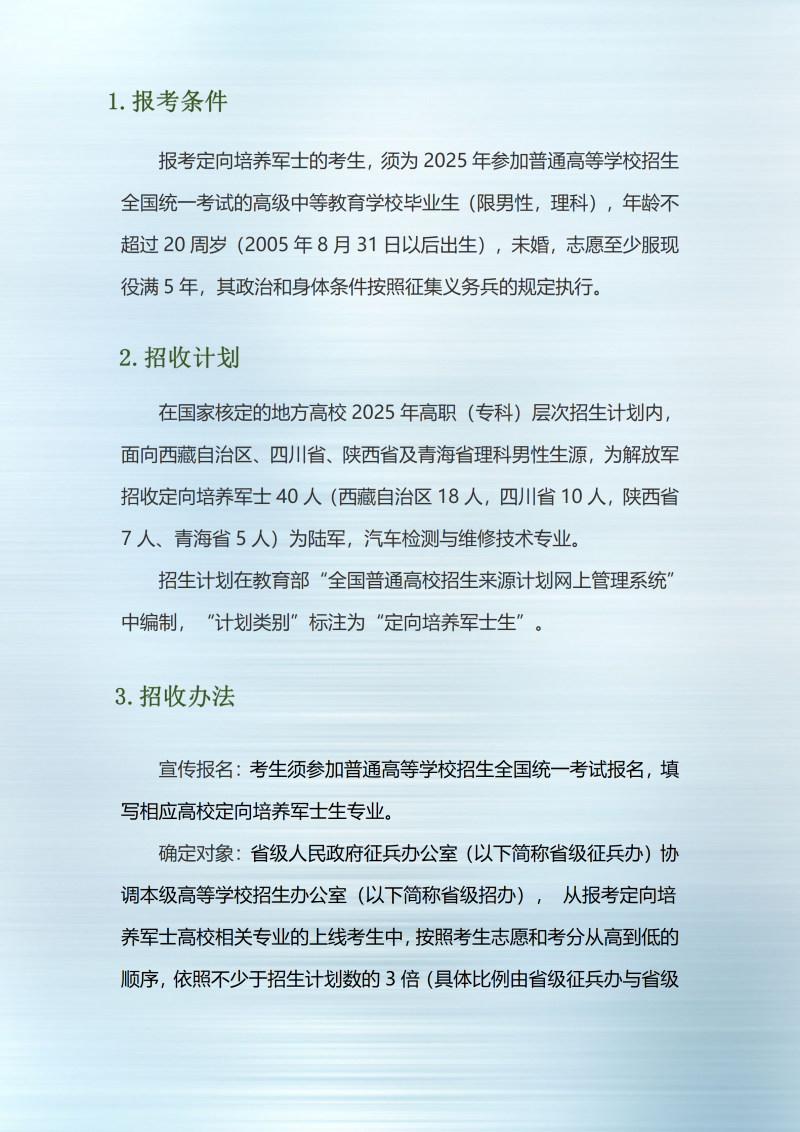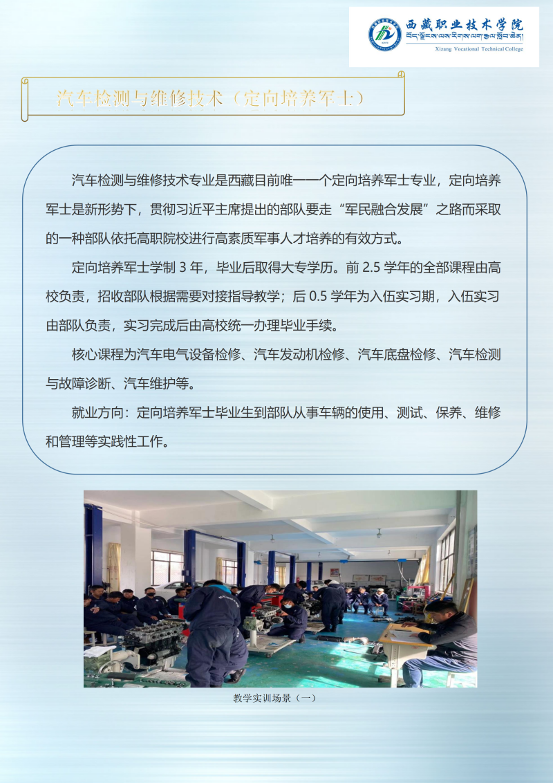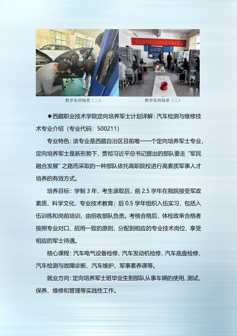 西藏职业技术学院2025年定向培养军士招生简章