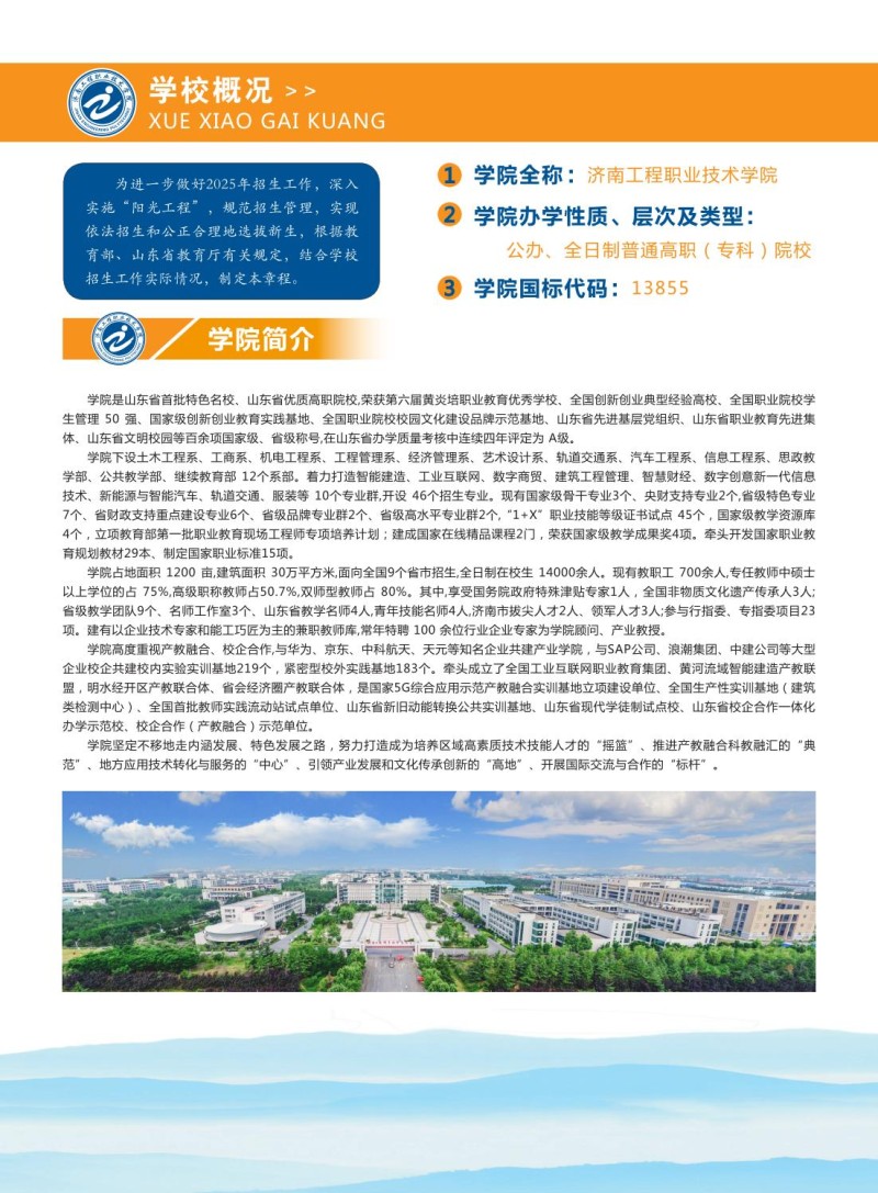 1、济南工程职业技术学院2025年普通高等教育招生章程