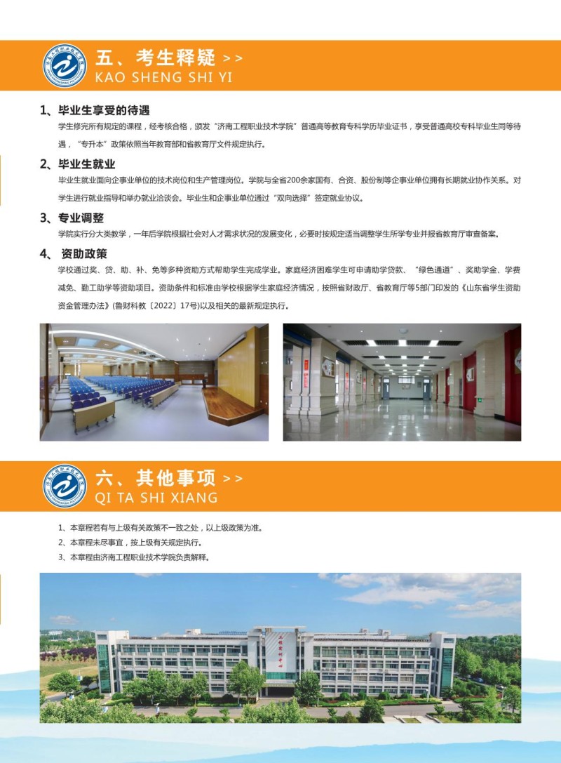 2、济南工程职业技术学院2024年普通高等教育招生章程
