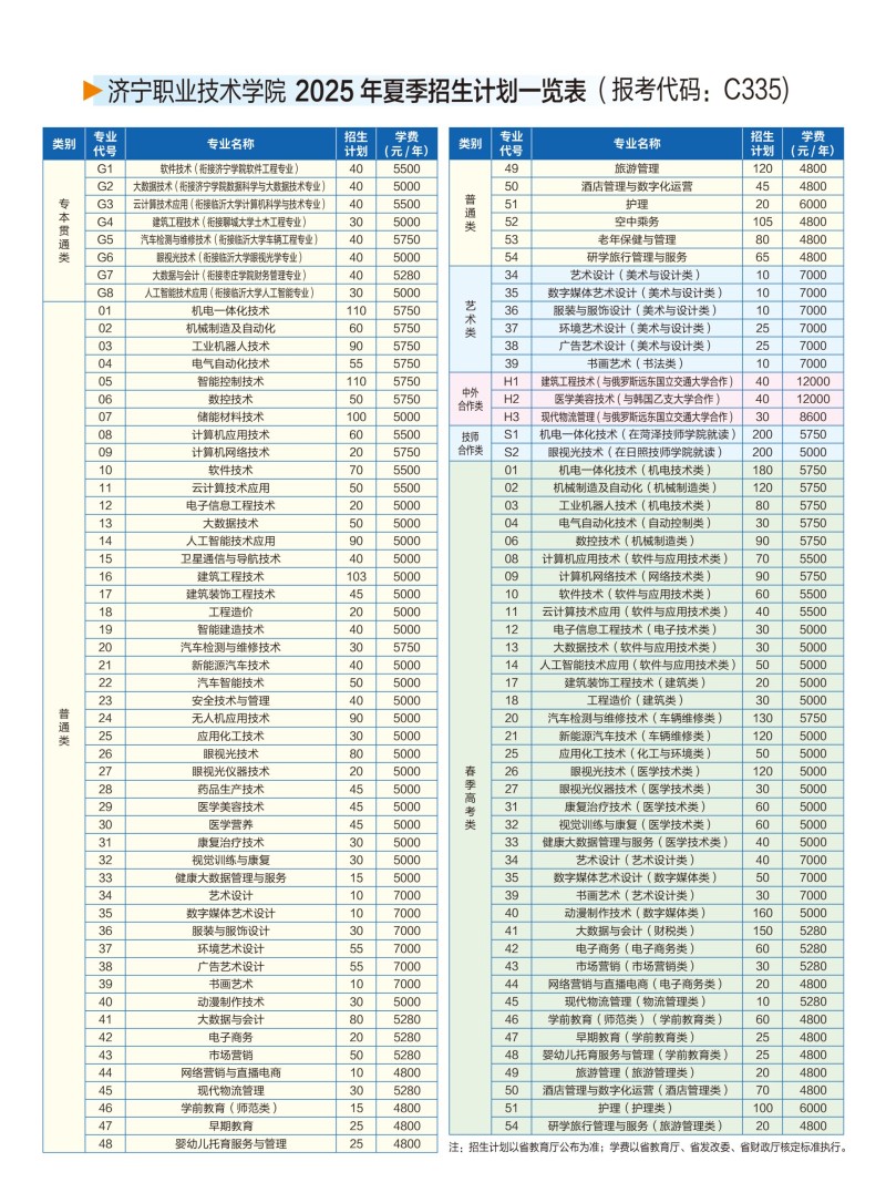 济宁职业技术学院2025年夏季招生简章