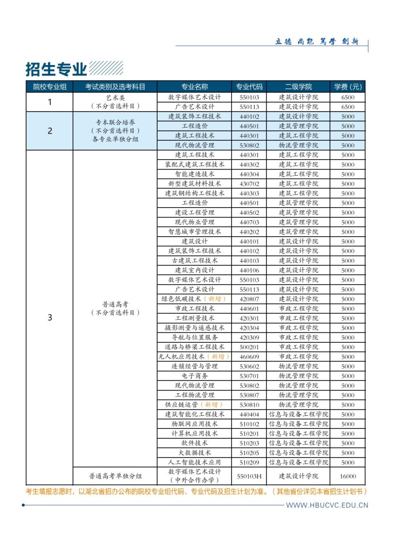 3、湖北城市建设职业技术学院2024年招生章程