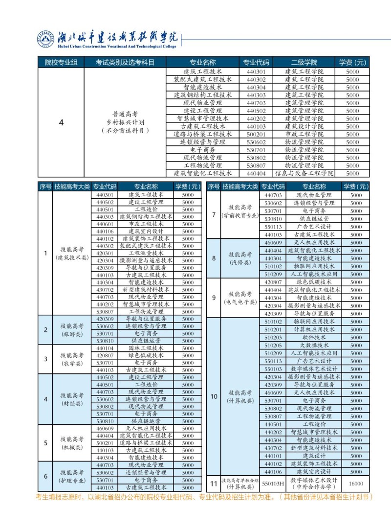 5、湖北城市建设职业技术学院2023年招生章程