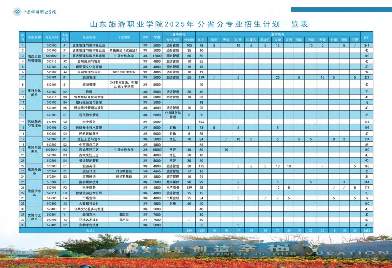 1、山东旅游职业学院2025年普通高等教育招生章程