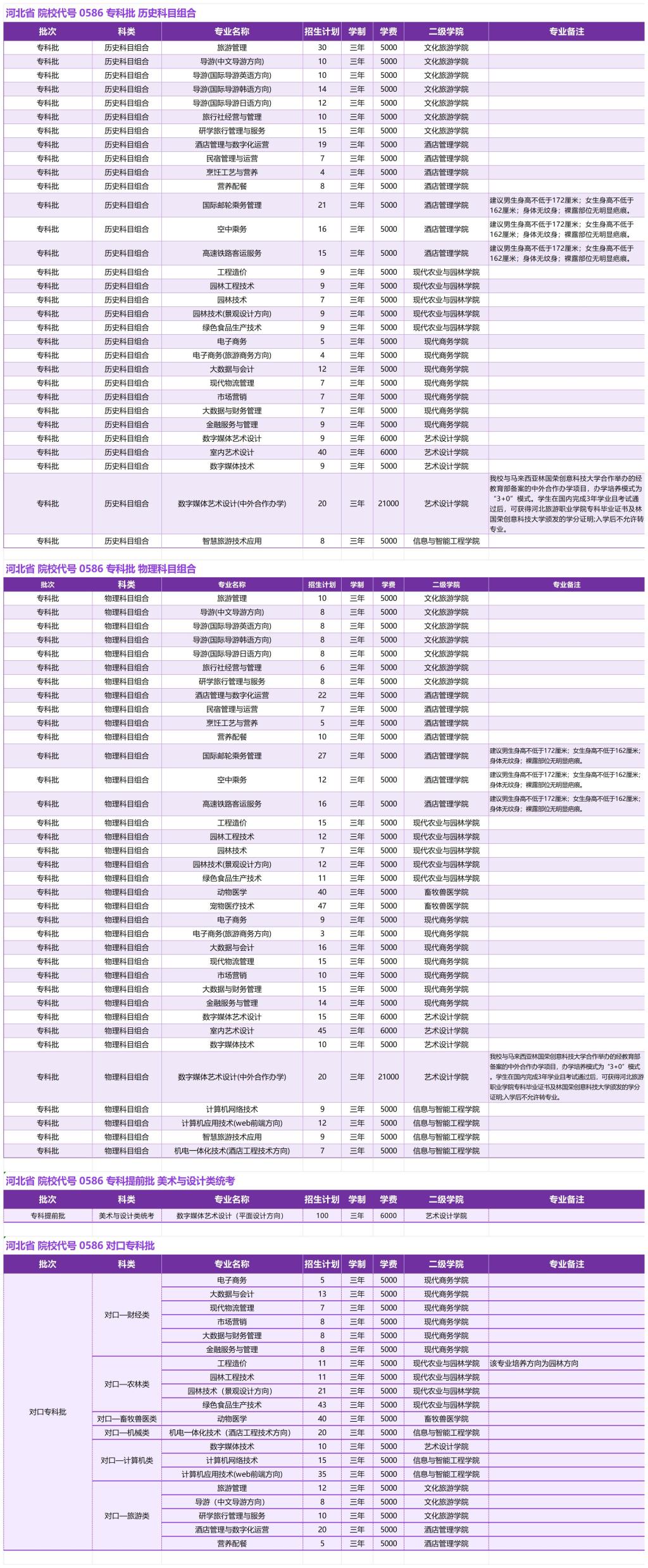 4、河北旅游职业学院2023年招生章程