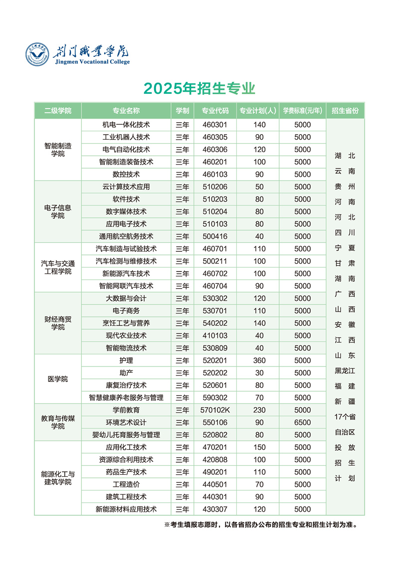 1、荆门职业学院2025年招生章程
