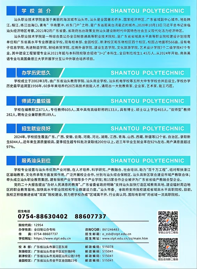 1、汕头职业技术学院2025年夏季高考招生章程