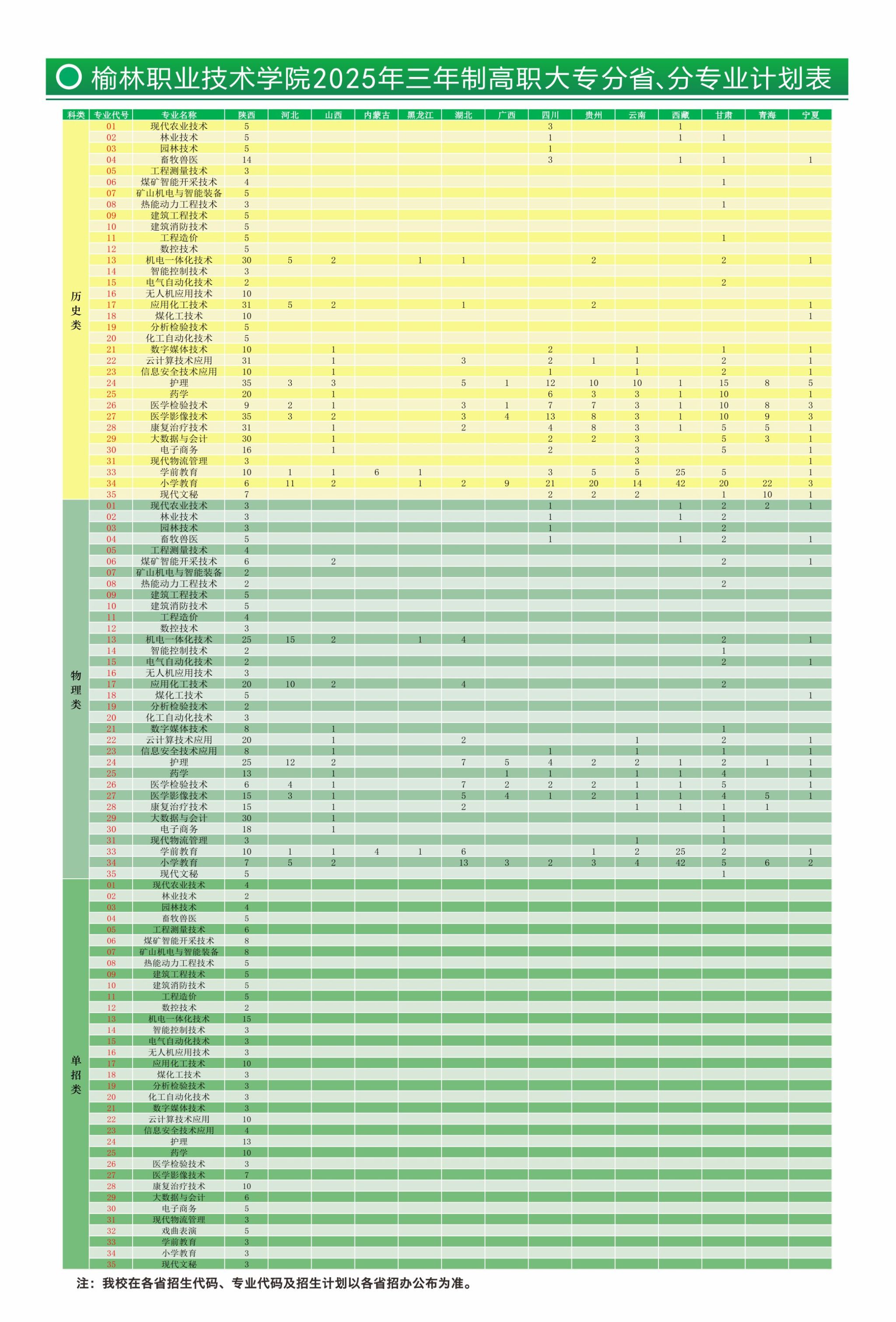 3、榆林职业技术学院2022年招生章程