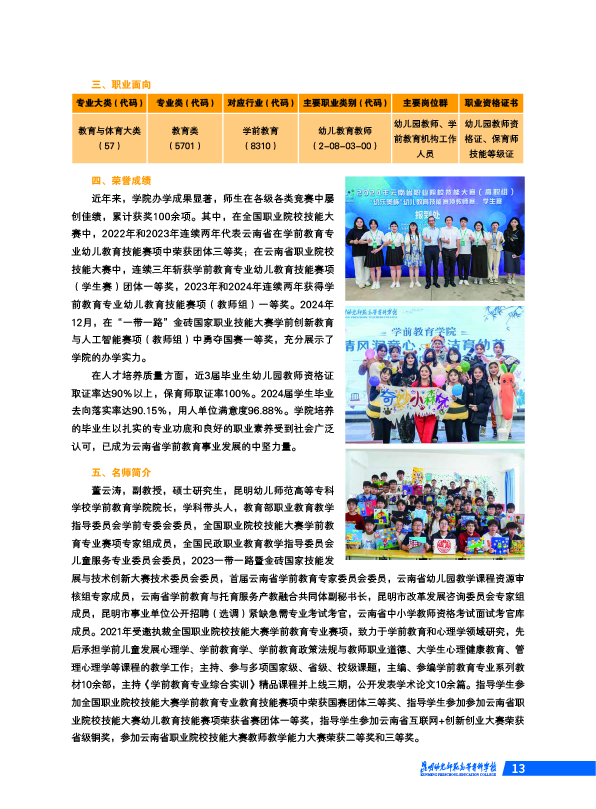 2、昆明幼儿师范高等专科学校2024年招生章程