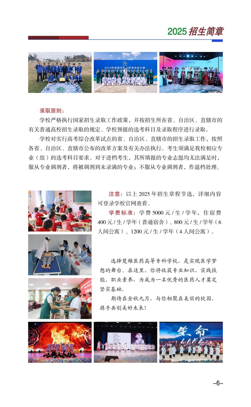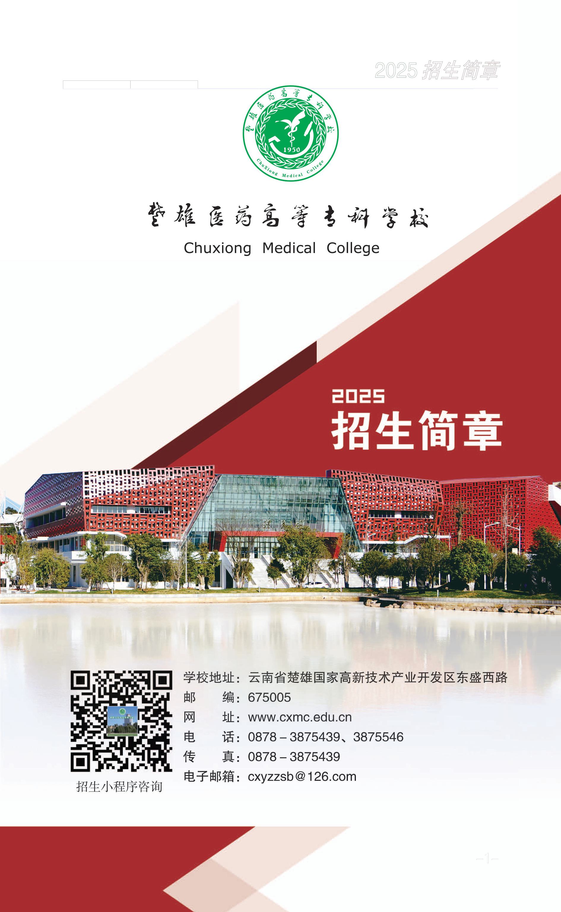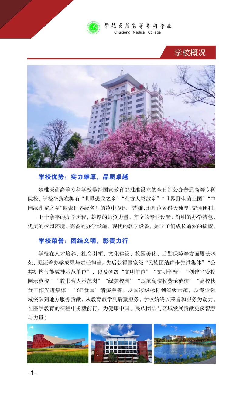 1、楚雄医药高等专科学校2025年普通高考招生章程