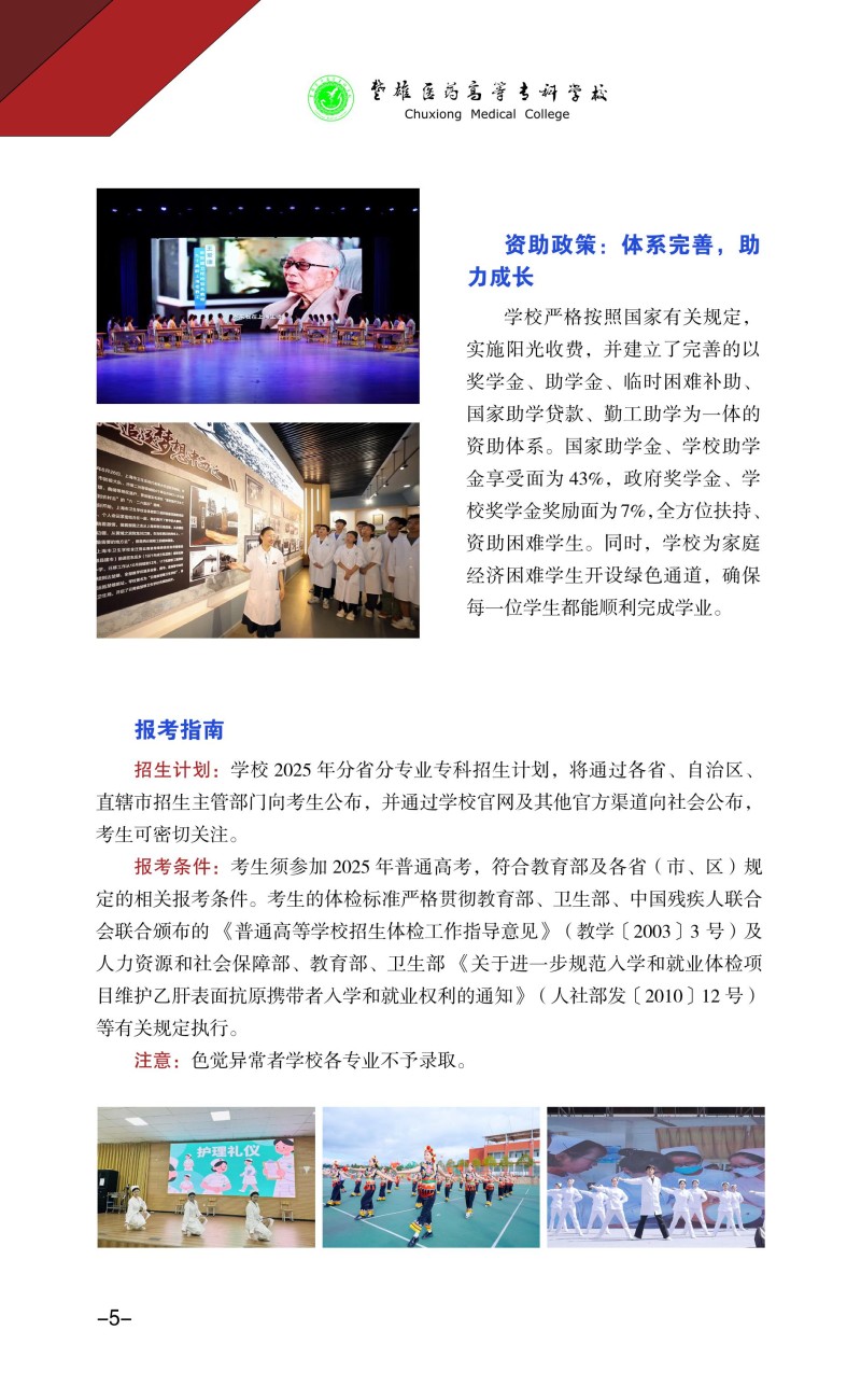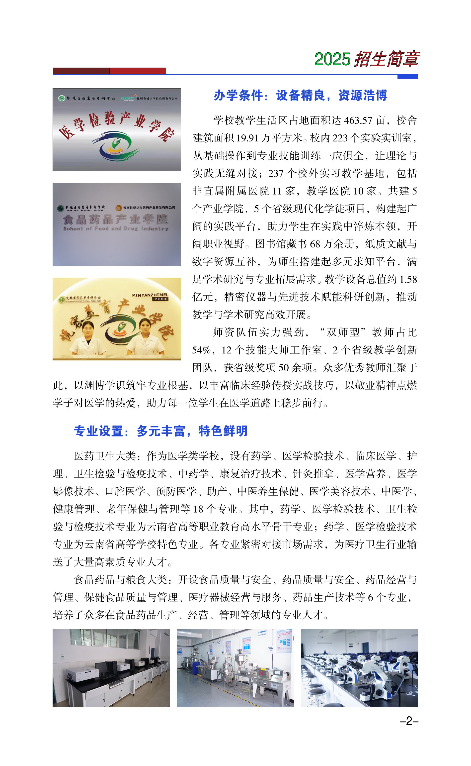 楚雄医药高等专科学校2025年招生简章