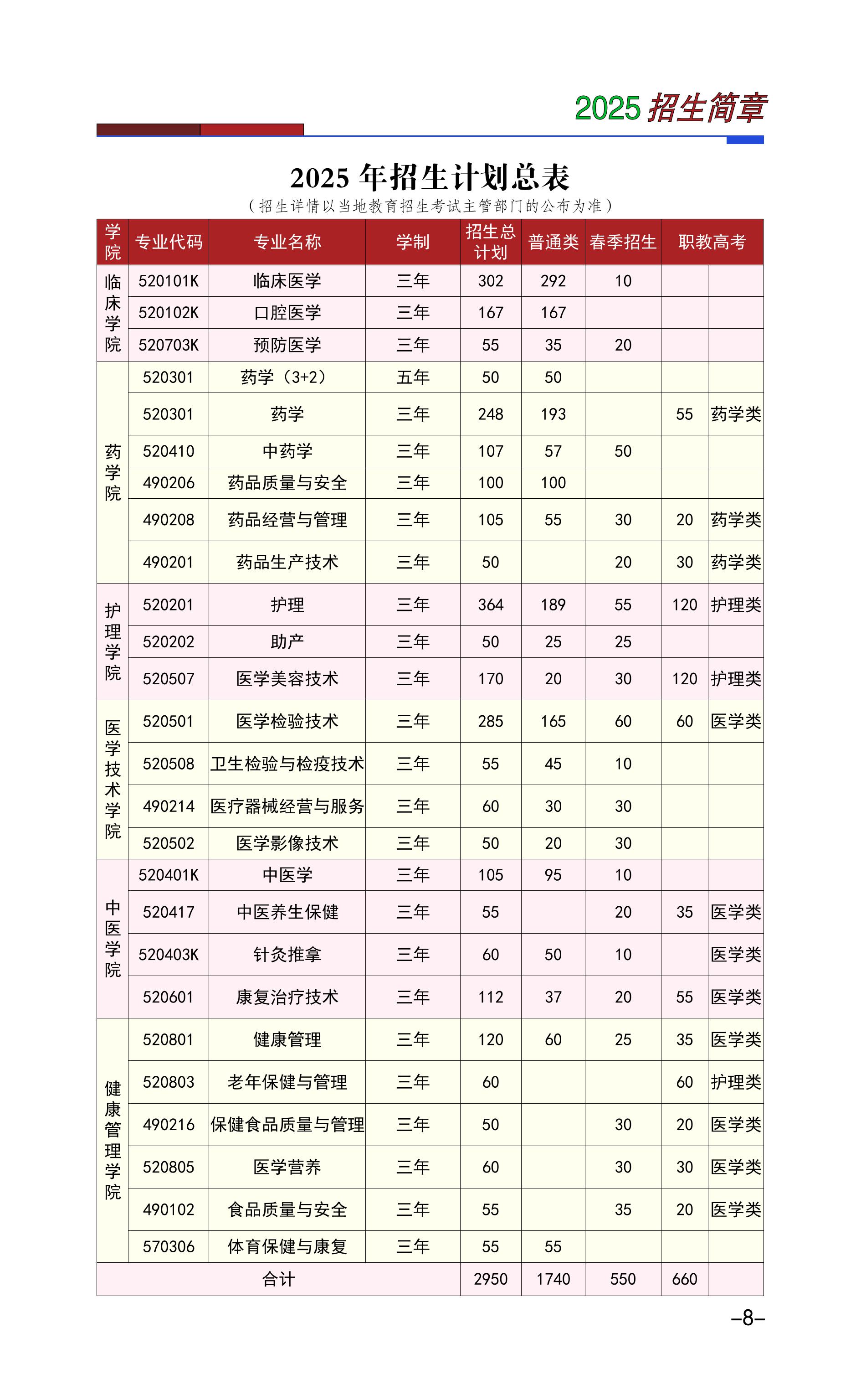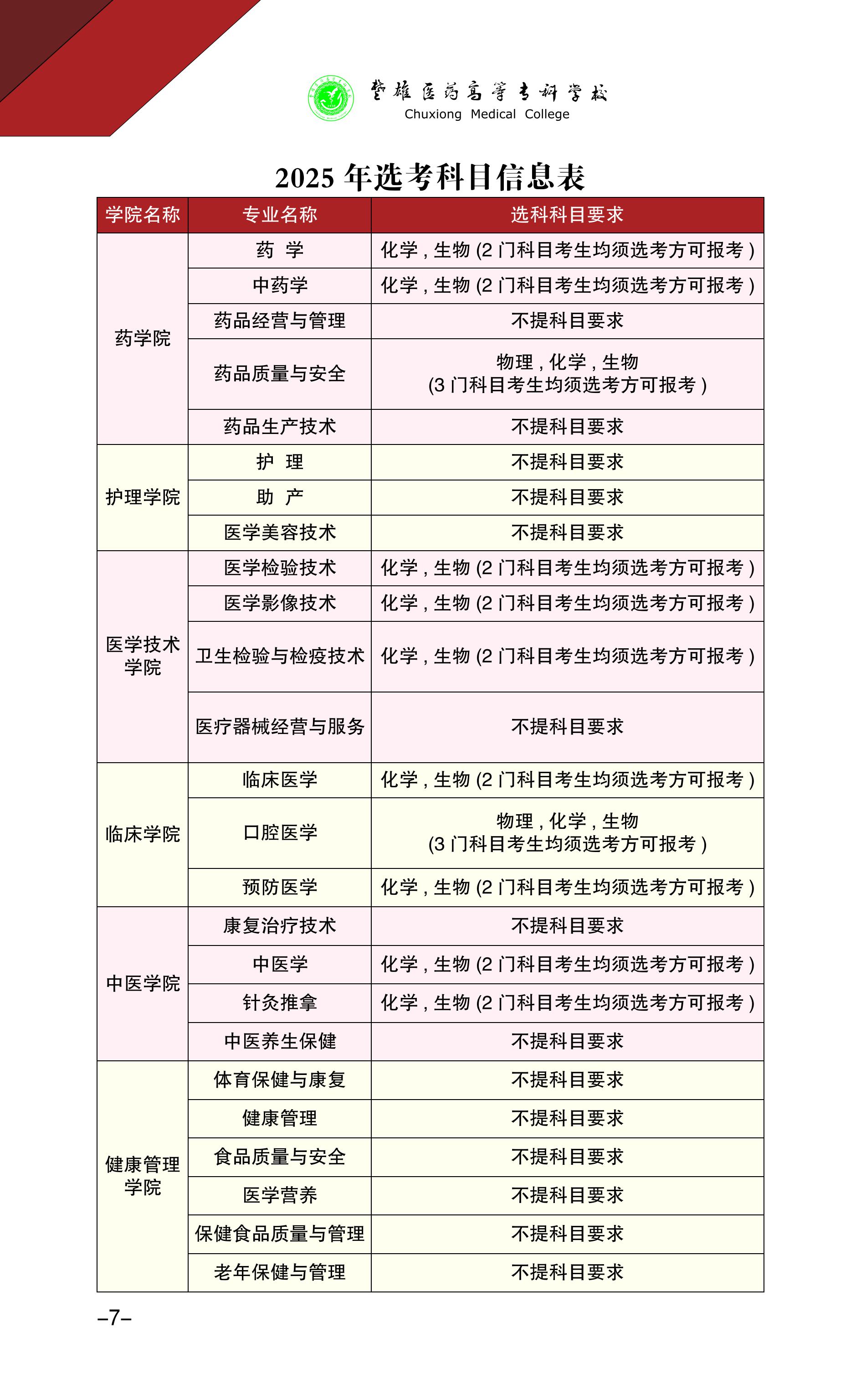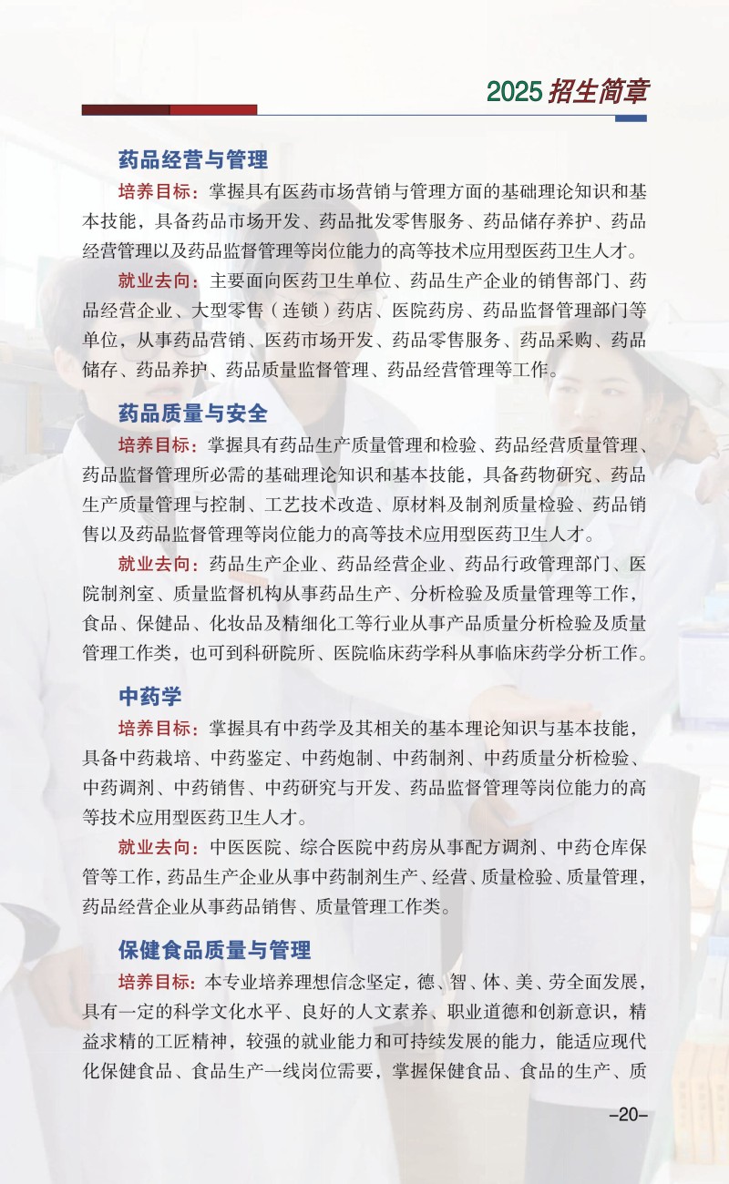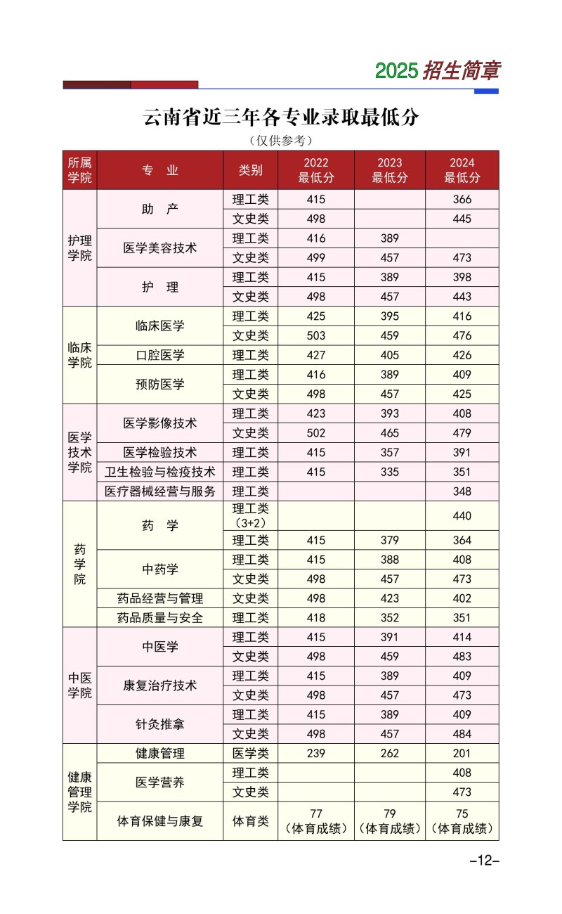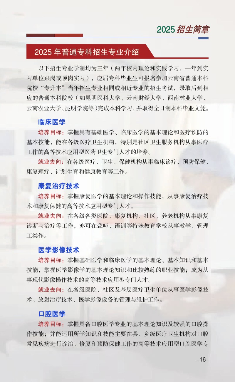 楚雄医药高等专科学校2025年普通高考招生章程