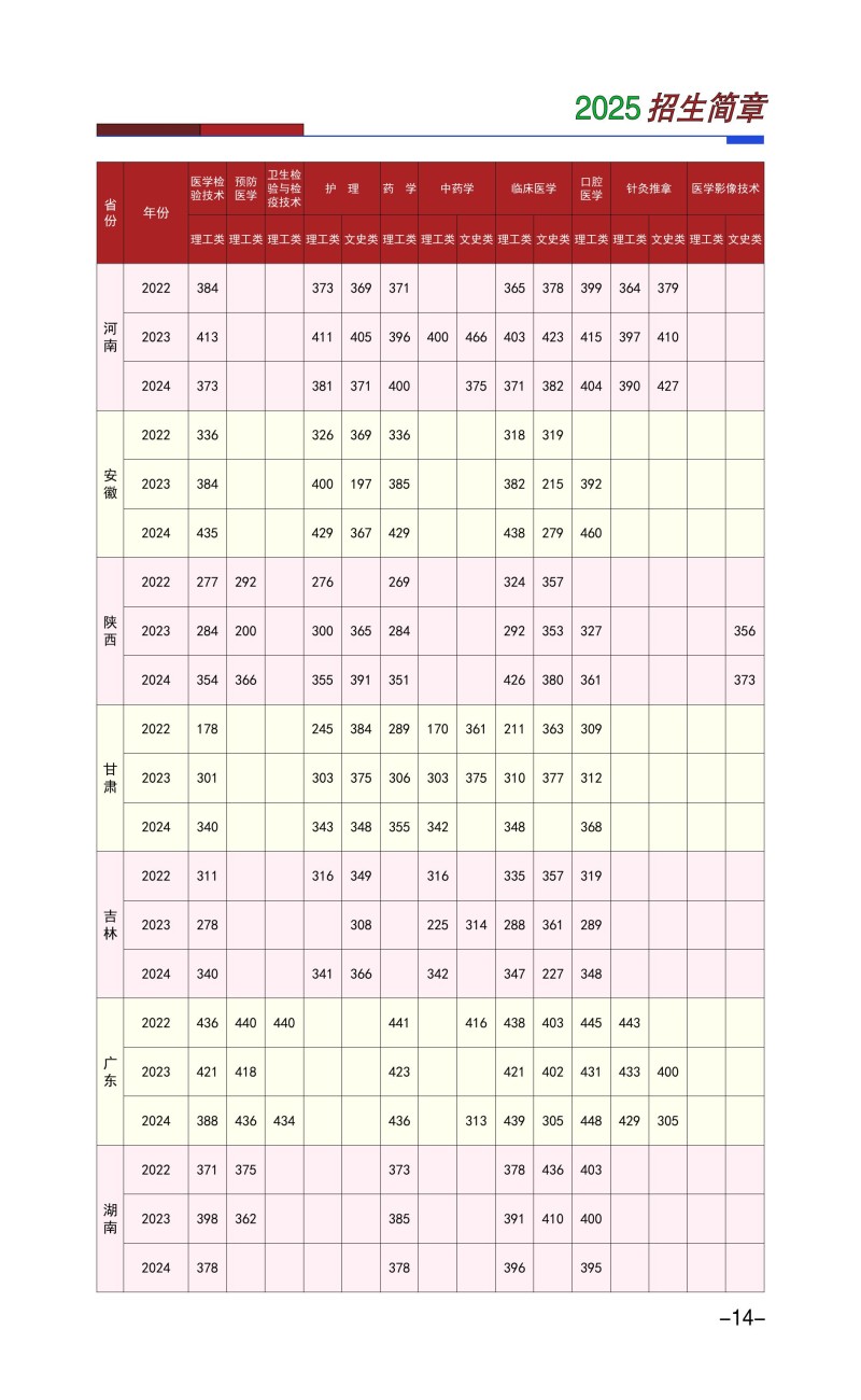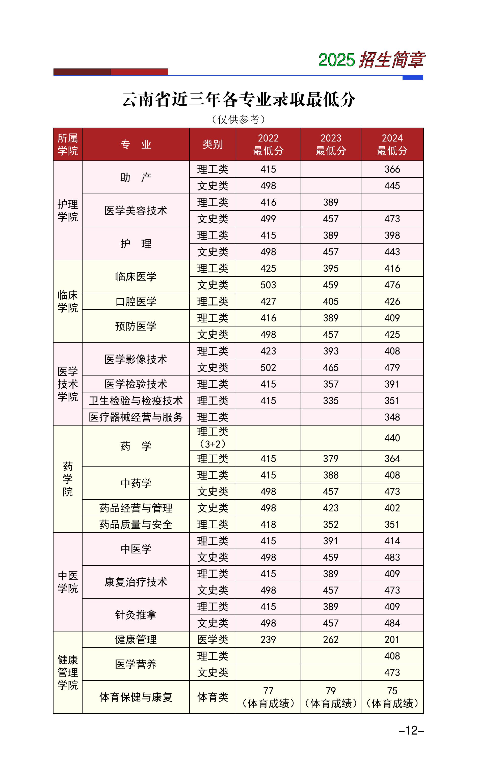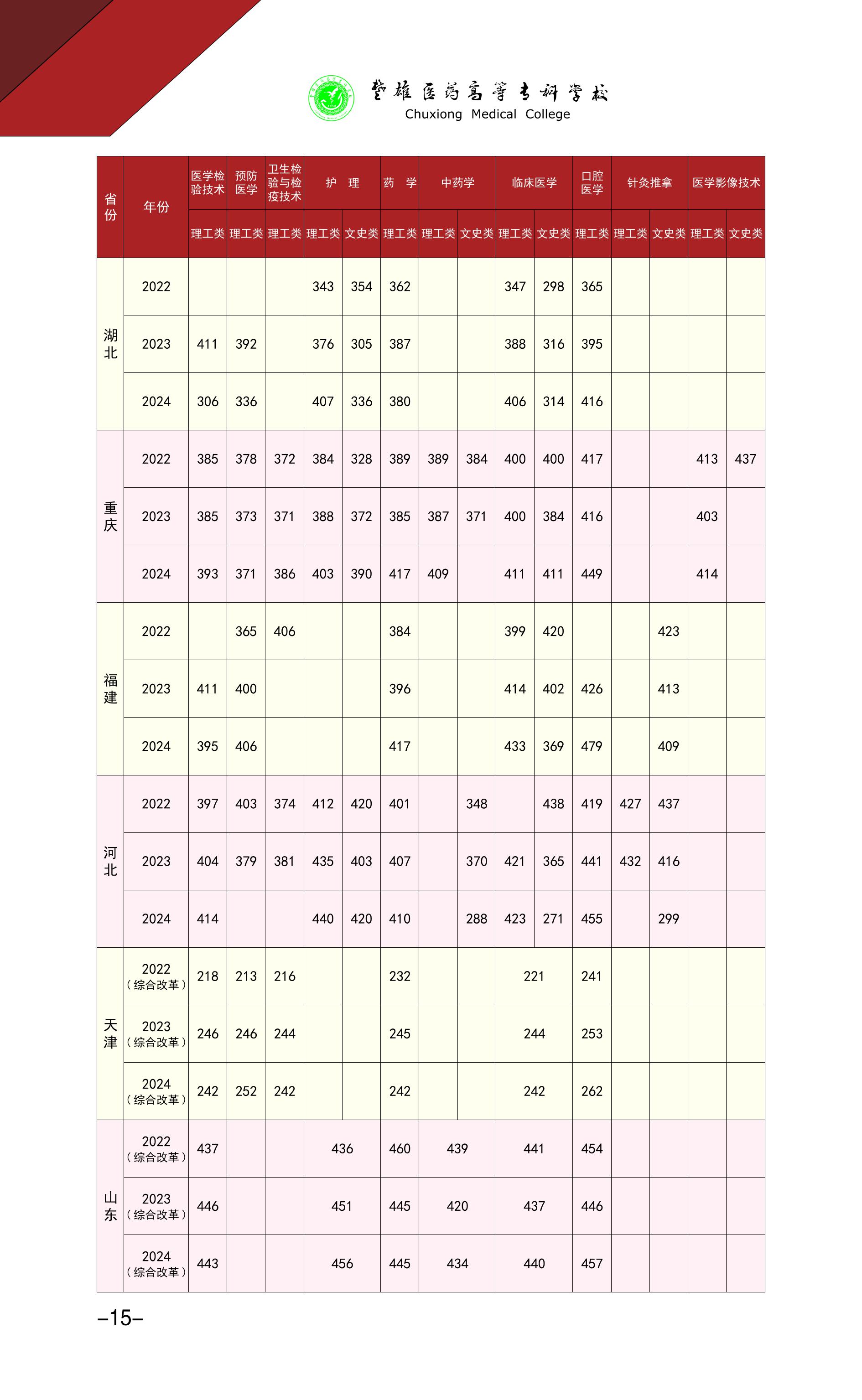 6、楚雄医药高等专科学校近三年各专业录取最低分