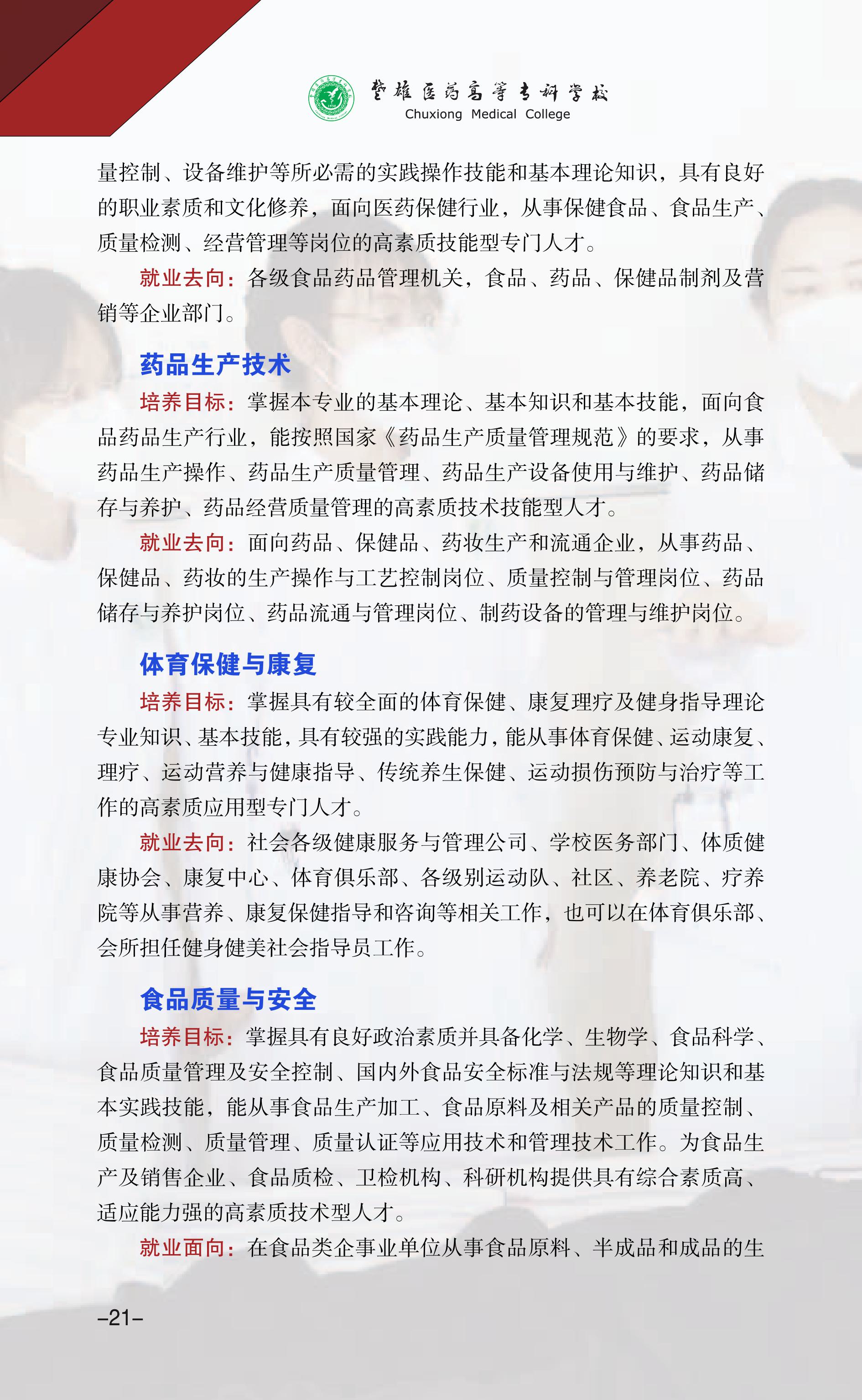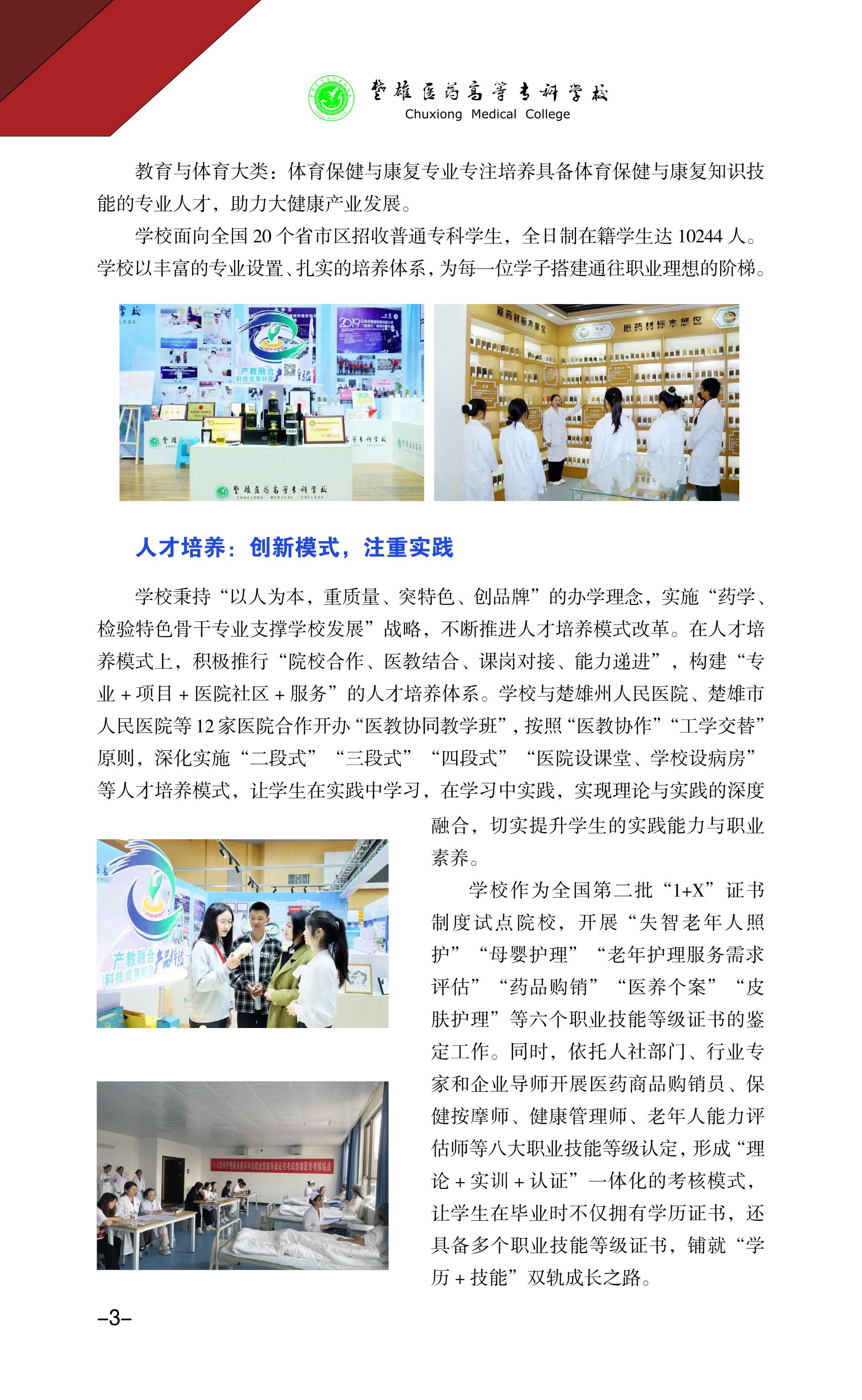 4、楚雄医药高等专科学校2021年招生章程