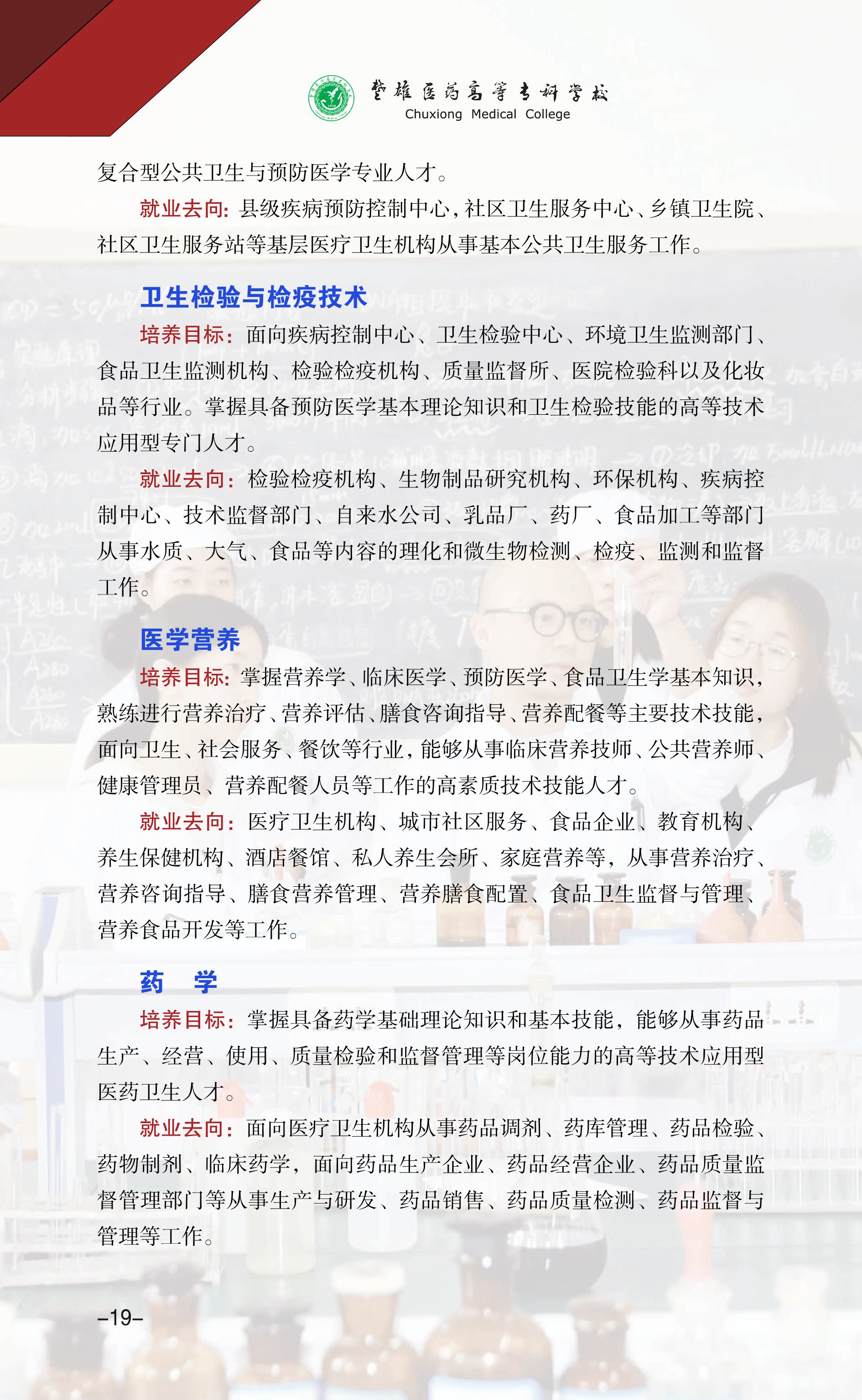 9、楚雄医药高等专科学校2019年招生章程