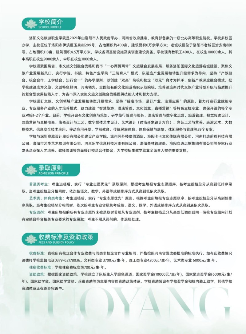 3、洛阳文化旅游职业学院2023年招生章程