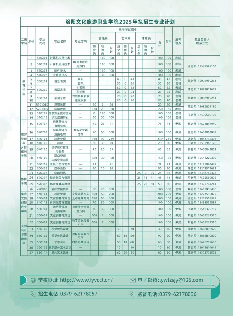 1、洛阳文化旅游职业学院2025年招生章程