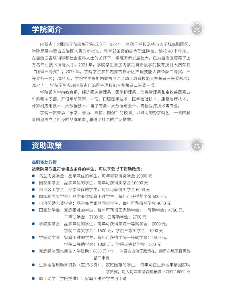 内蒙古丰州职业学院青城分院2025招生简章