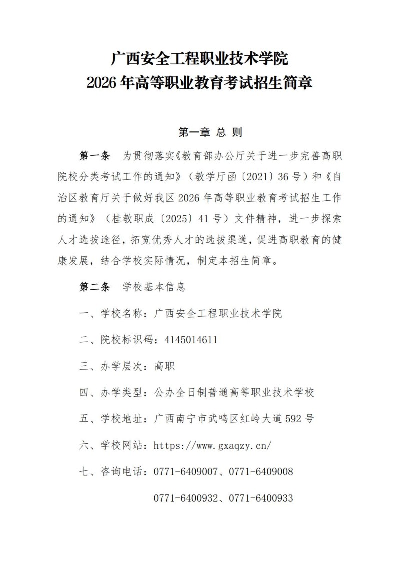 1、2024年广西安全工程职业技术学院招生章程