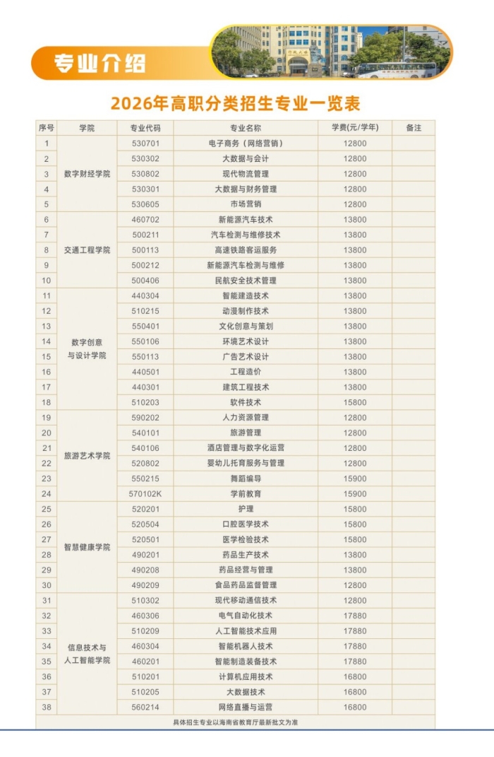 2、海南工商职业学院2024年招生章程