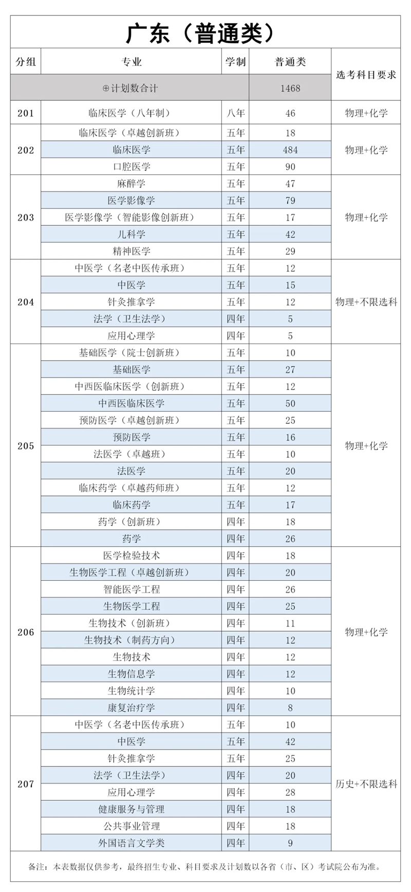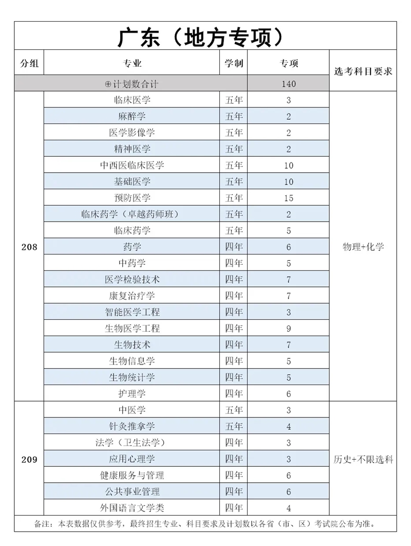 增设物理+不限科目专业组,组内专业含中医学(名老中医传承班)、中医学、针灸推拿学、法学(卫生法学),应用心理学等,理科生也可报文科专业。