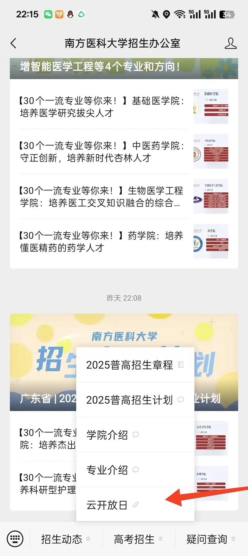 点击“高考招生-云开放日”子菜单