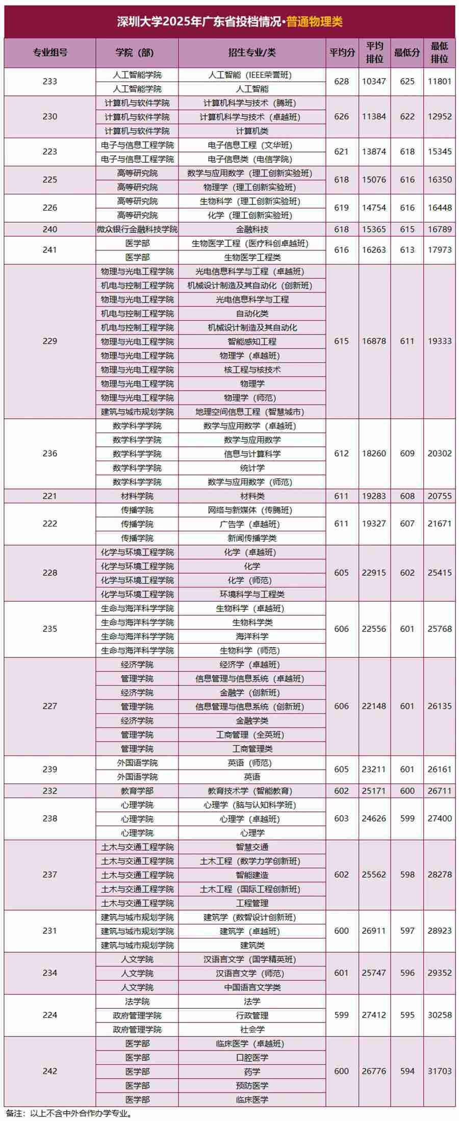 注:中外合作办学专业入校后不能转入其他非中外合作专业。
