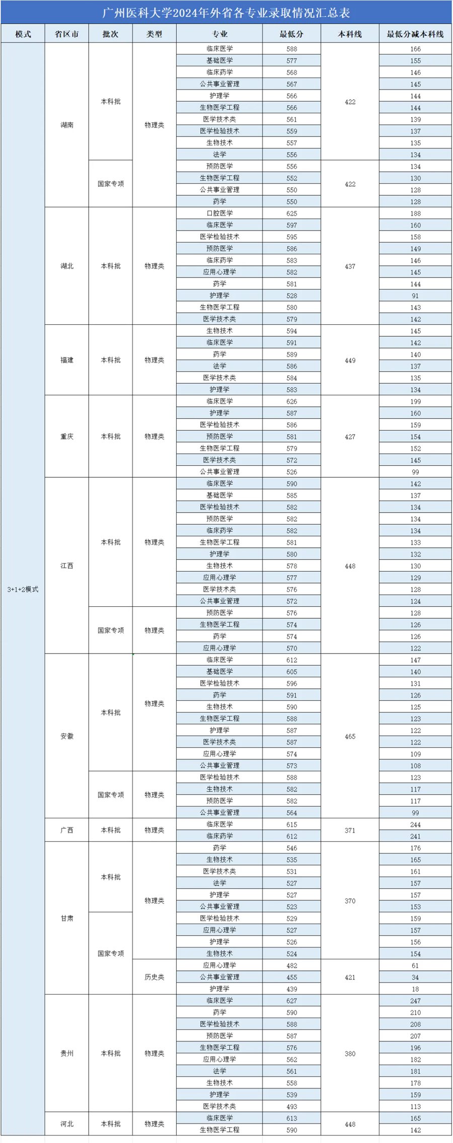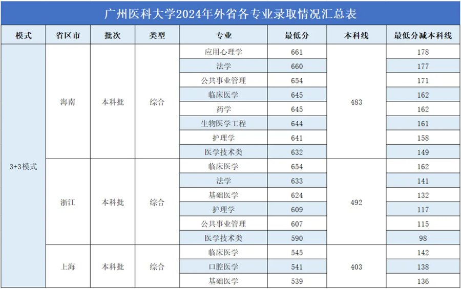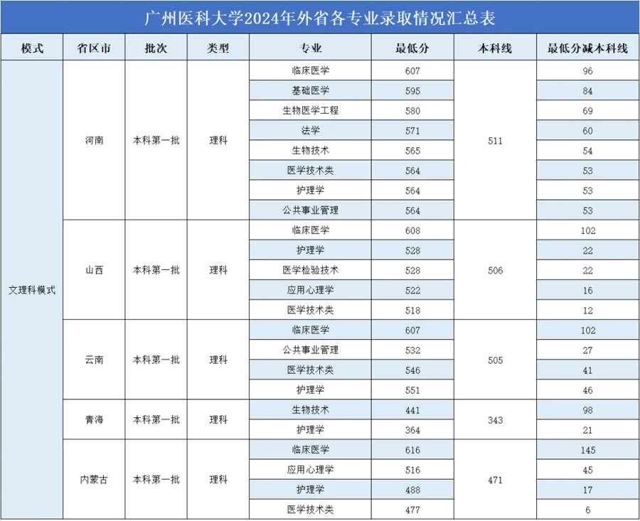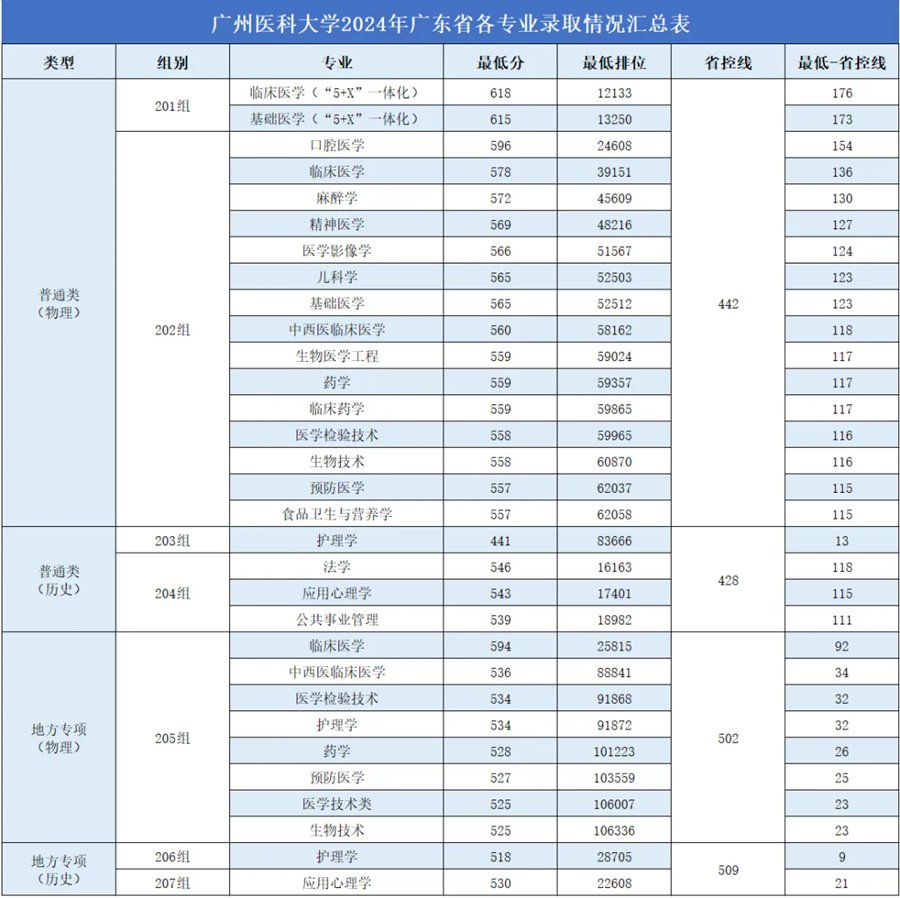 2024年广州医科大学录取情况表