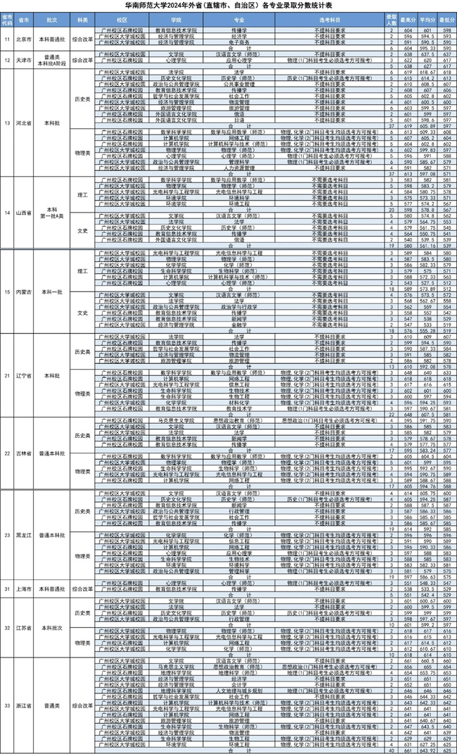 华南师范大学教师专项在广东省提前批录取,其他专业在本科批录取。在各省、自治区、直辖市的录取批次均安排在第一批本科(合并批次的省份安排在本科批)。
