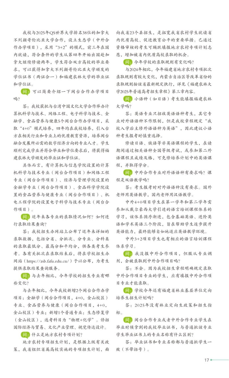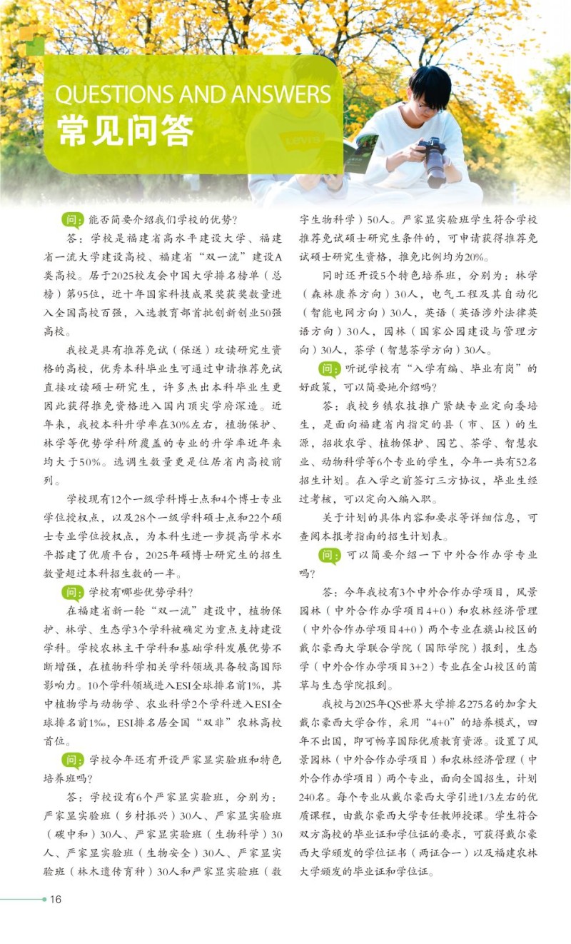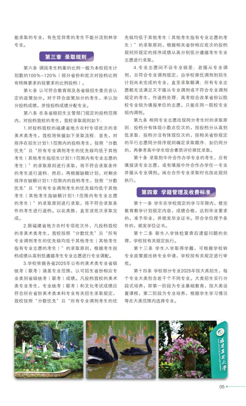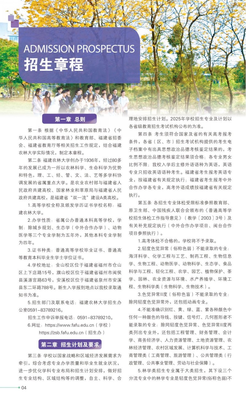 2、福建农林大学2025年普通高考招生章程