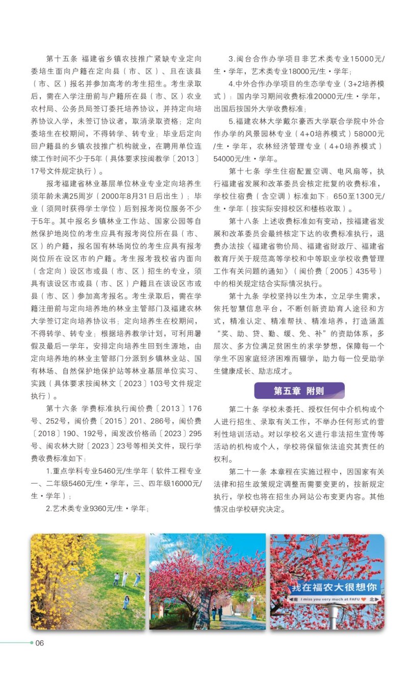 4、福建农林大学2023年普通高考招生章程
